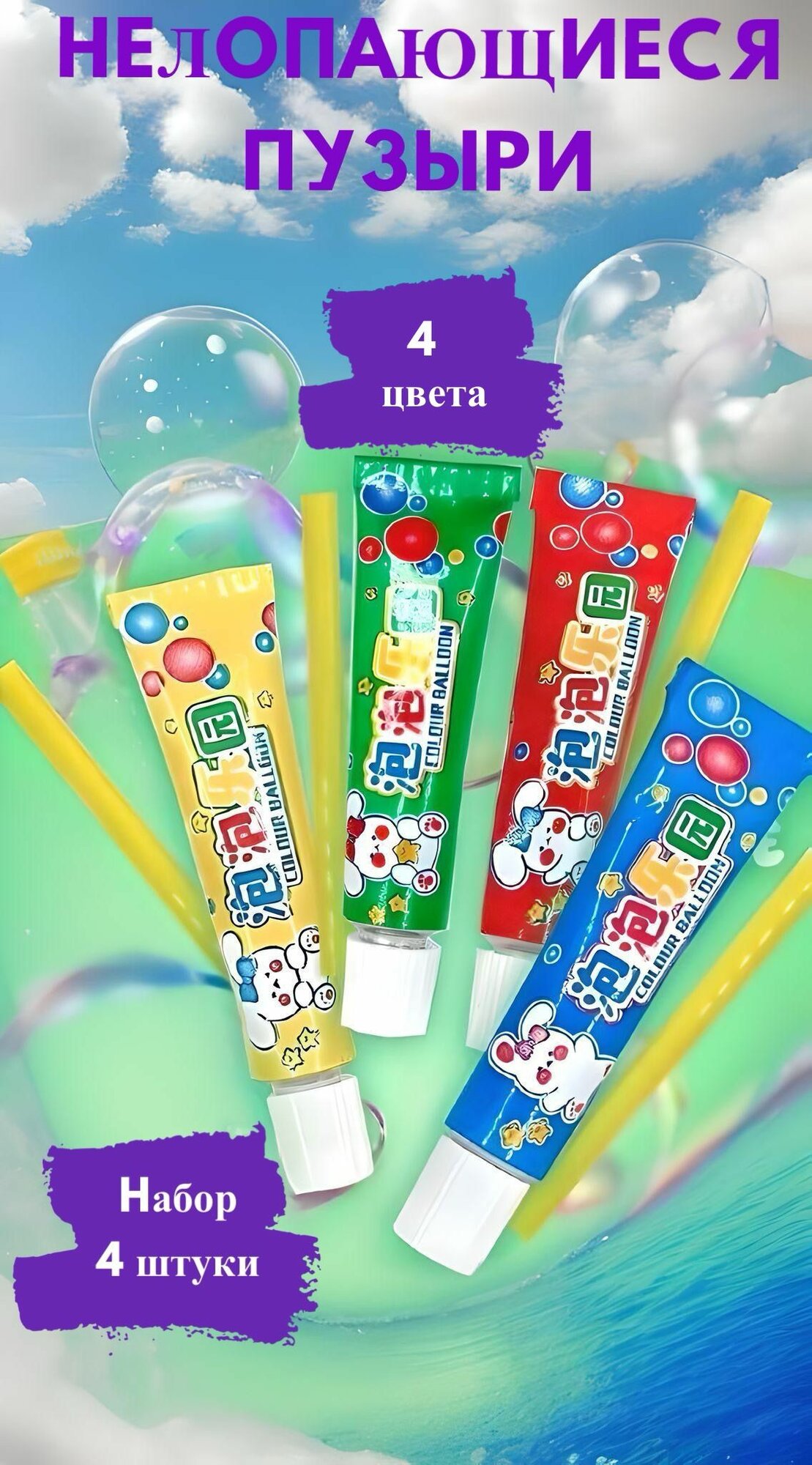 Нелопающиеся мыльные пузыри, гигантские, набор 4 шт, 4 цвета: красный, синий, желтый, оранжевый интересное: