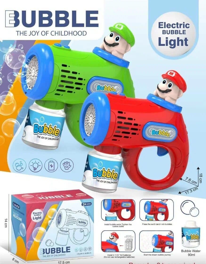 Пистолет для мыльных пузырей генератор на батарейках, Марио интересное: