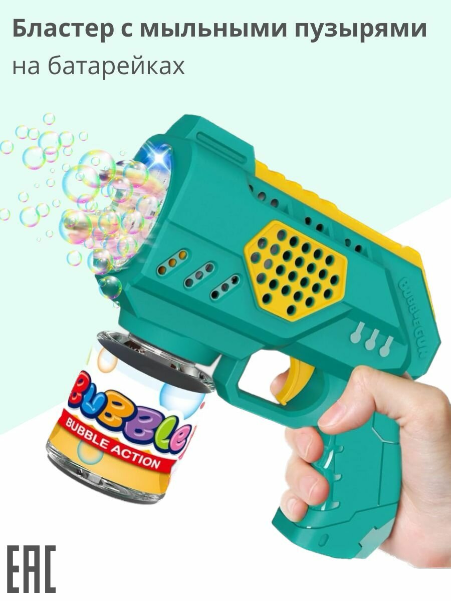 Купить Бластер мыльные пузыри, бирюзовый / Мыльные пузыри пистолет для мальчиков на батарейках