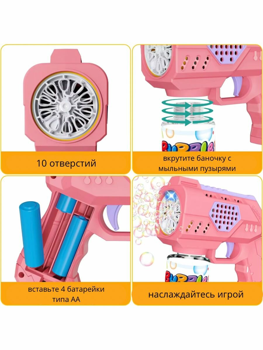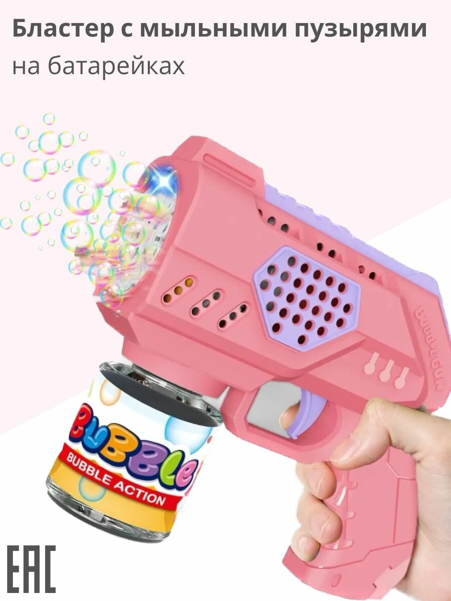 Купить Бластер мыльные пузыри, розовый / Мыльные пузыри пистолет для девочек на батарейках