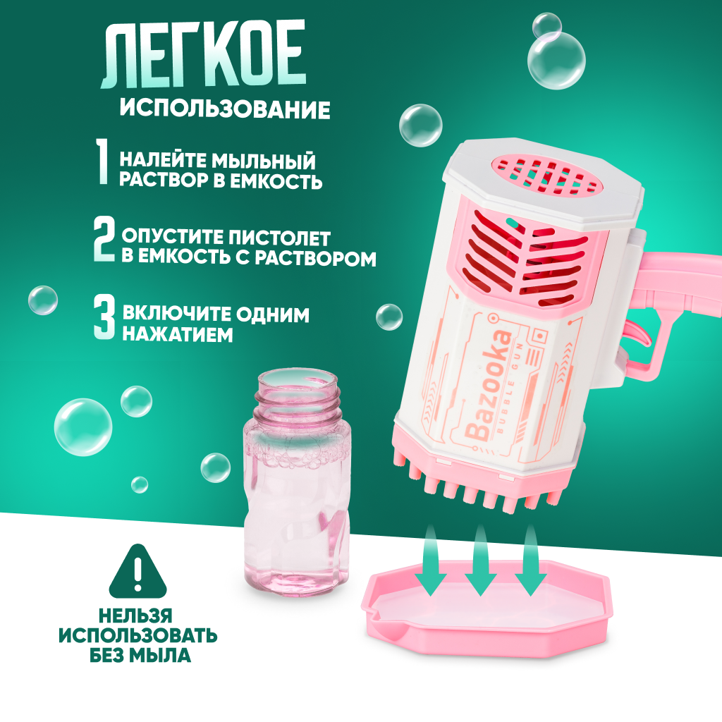 Генератор мыльных пузырей Solmax детский пистолет розовый интересное: