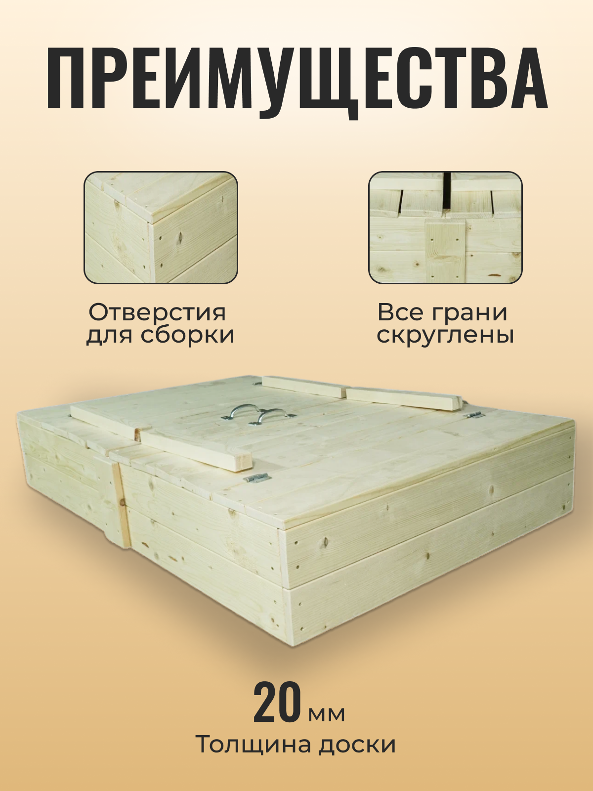 | Особенности песочницы | с крышкой / сборная |