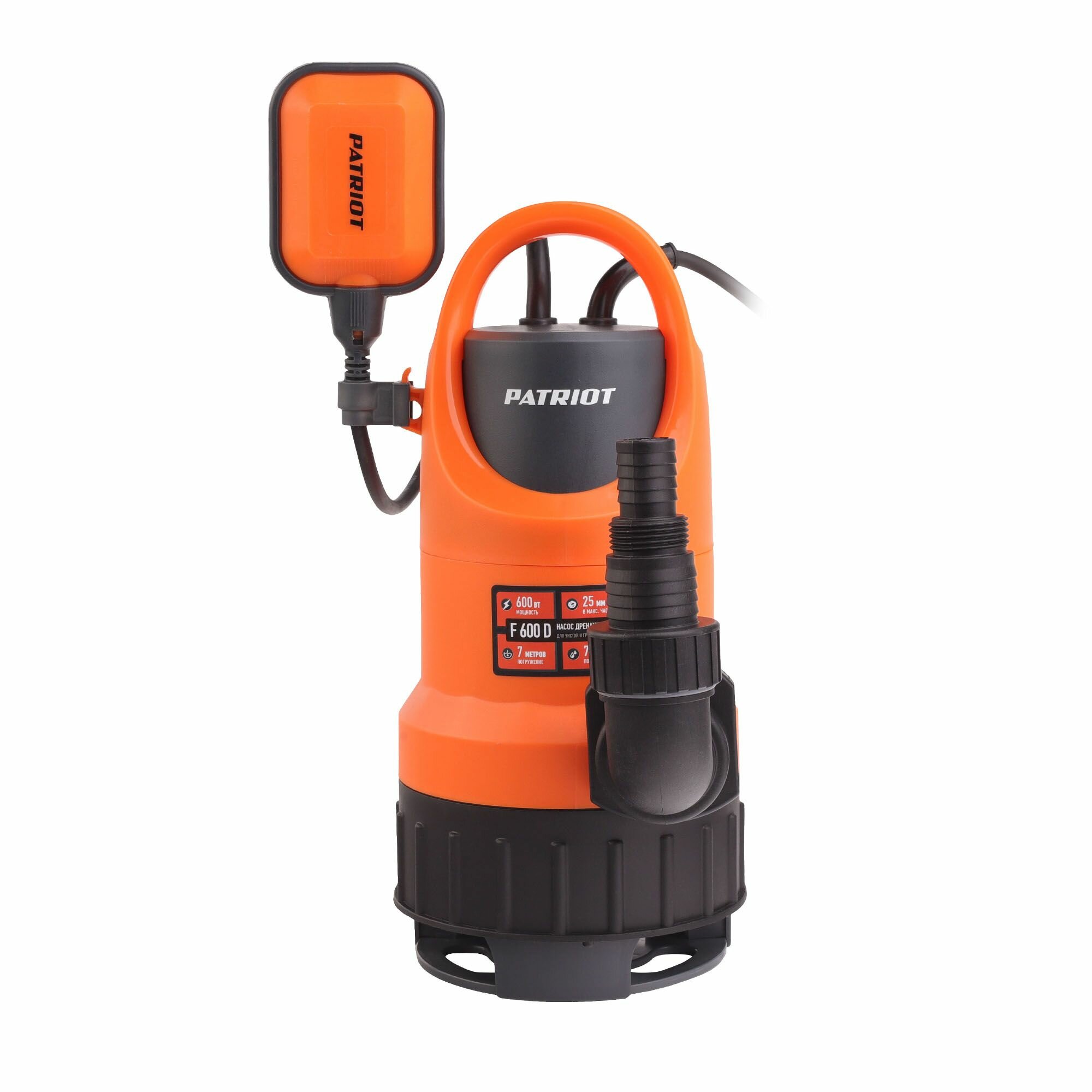 Насос дренажный PATRIOT F 600 D; для чистой и грязной воды; корпус - пластик, 600 Вт, 10000 л/час.