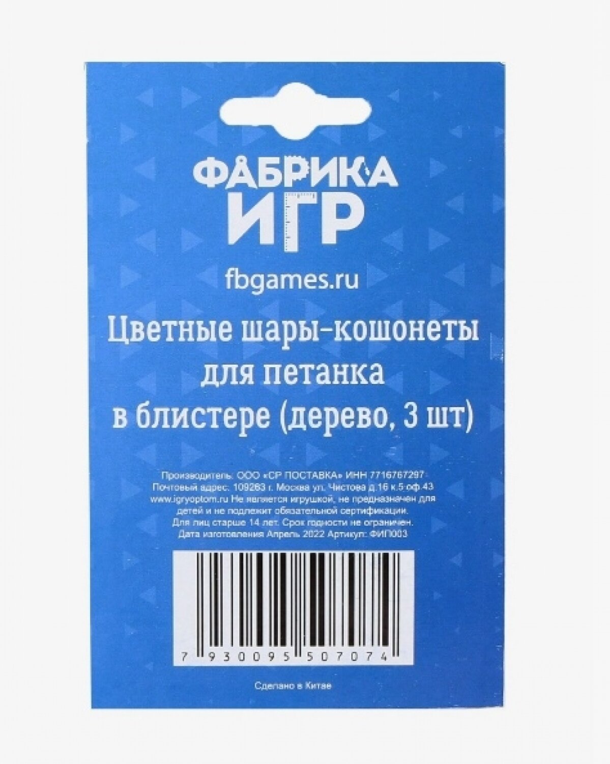 Цветные шары-кошонеты для петанка в блистере (дерево, 3 шт.)