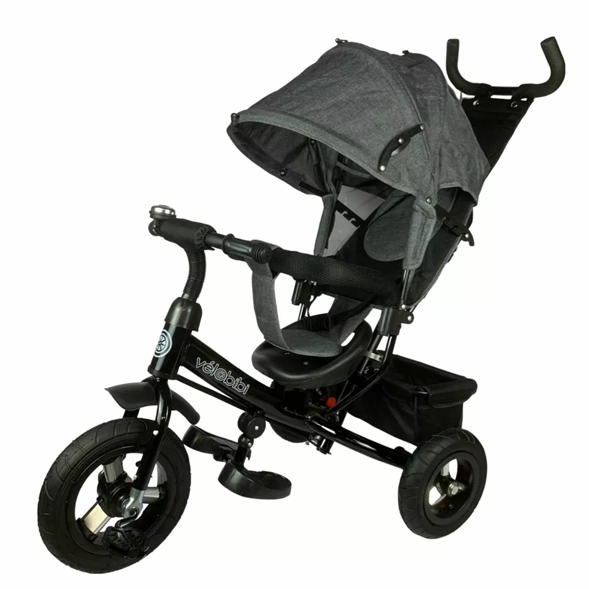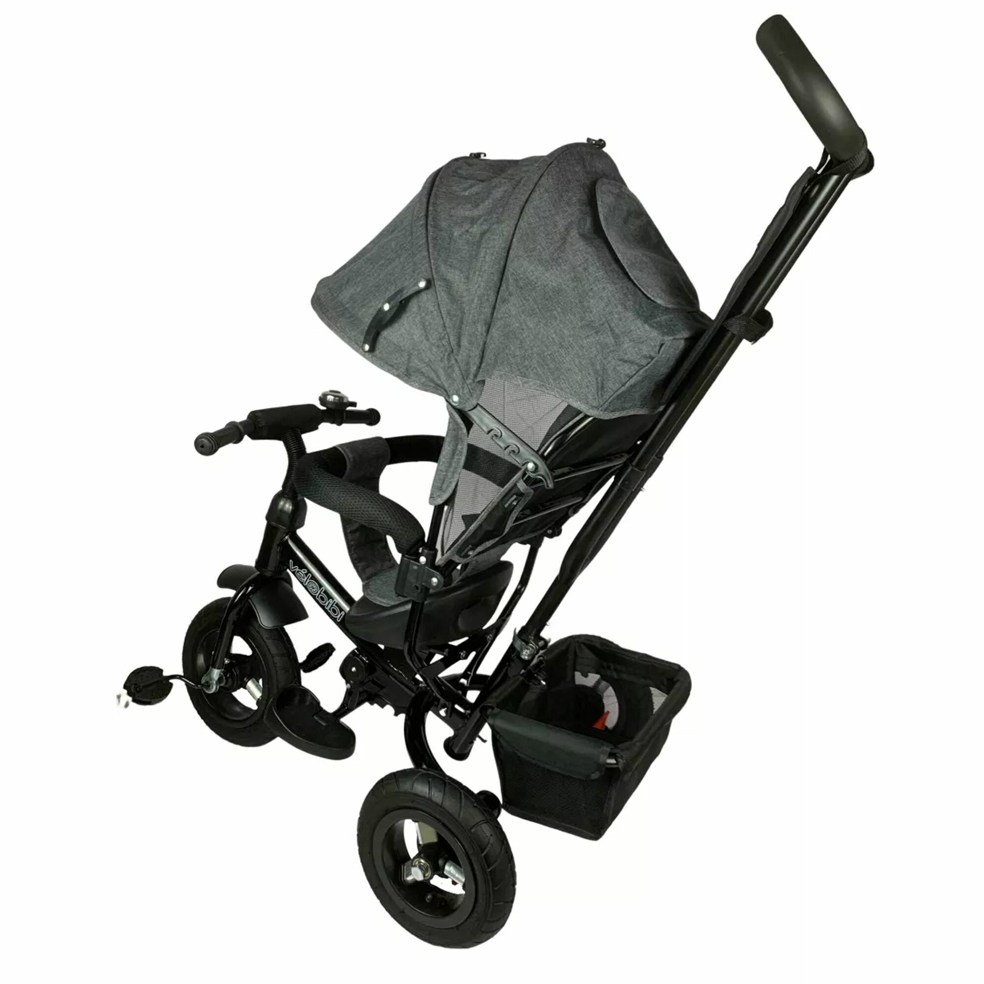 Купить Велосипед 3-хколесный с ручкой, колеса надувные 10"/8" корзина, серый