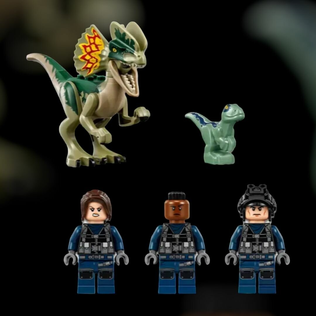 СохранитьКонструктор Мир динозавров "Нападение дилофозавра на сторожевой пост" 307 деталей интересное: