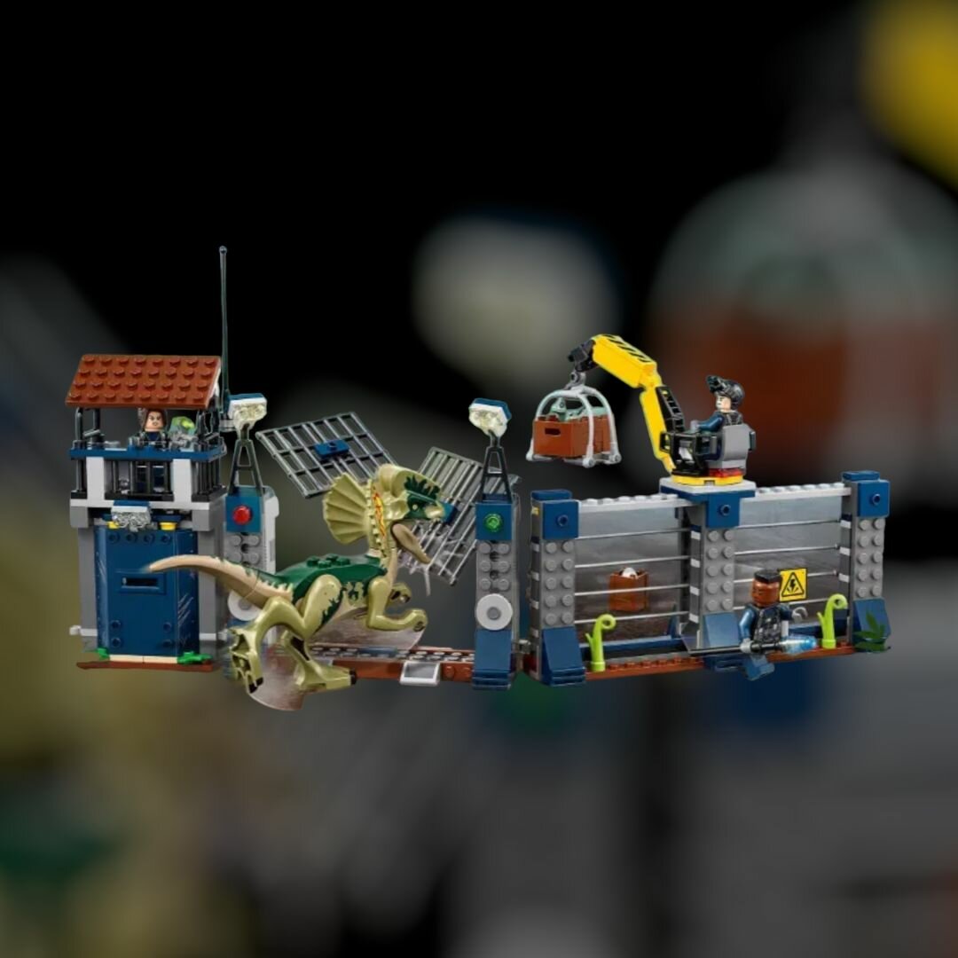 Купить Конструктор Мир динозавров "Нападение дилофозавра на сторожевой пост" 307 деталей