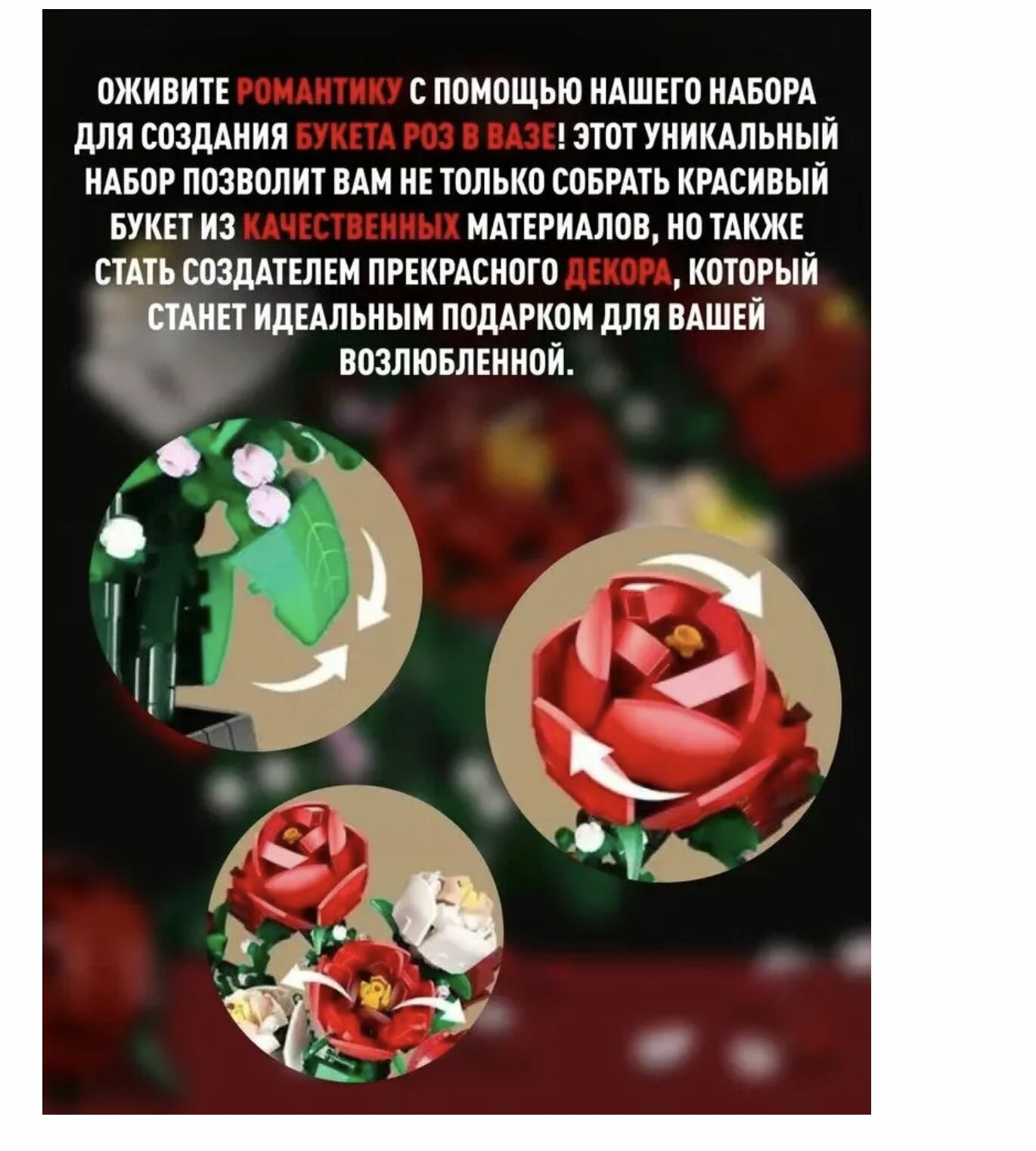 СохранитьКонструктор Букет роз в вазе 92365, 878 дет. интересное: