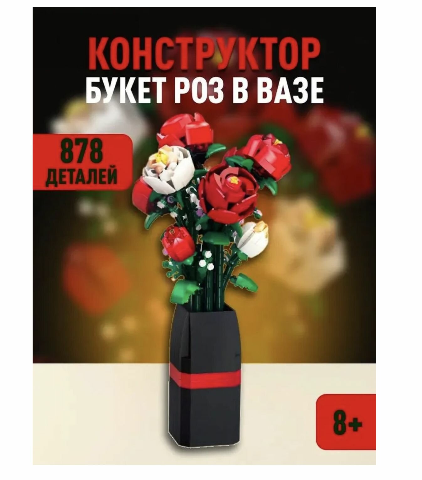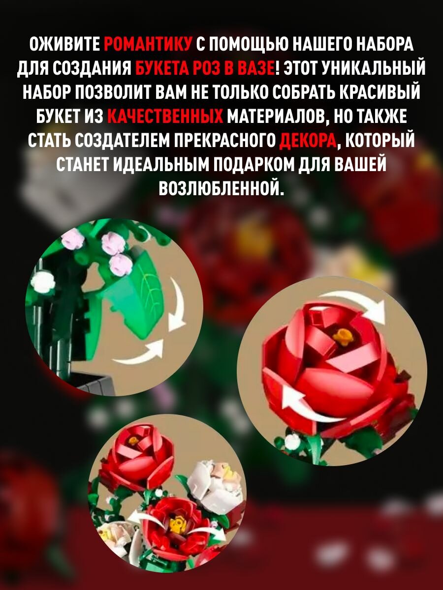Купить Конструктор Букет роз в вазе 92365, 878 дет.