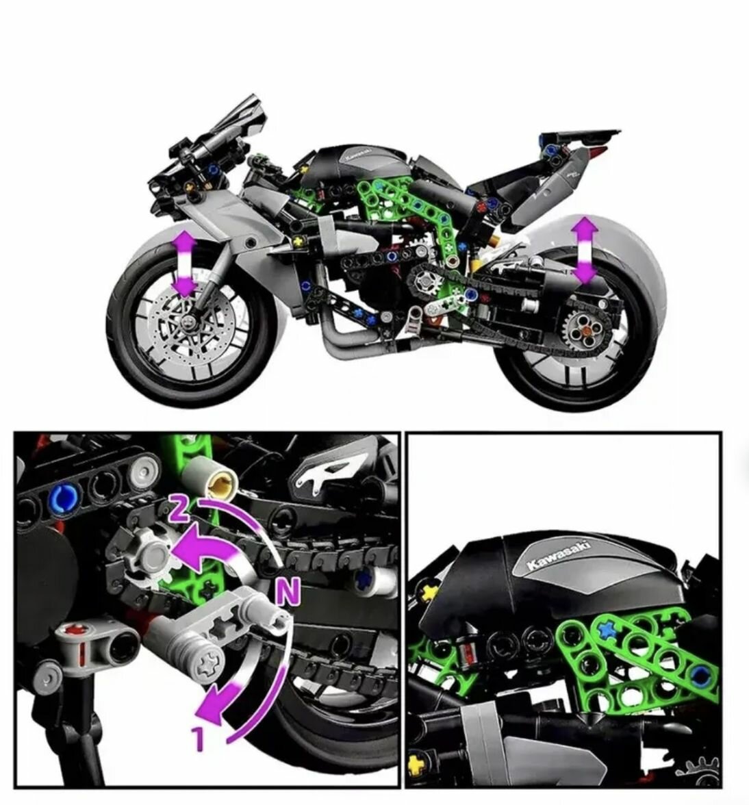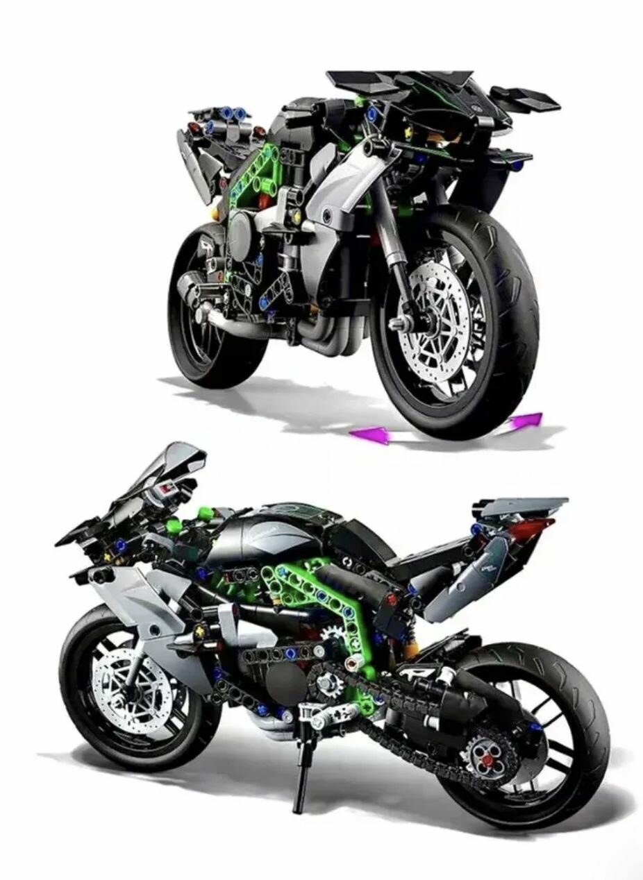 СохранитьКонструктор "Мотоцикл: Kawasaki Ninja H2" 643 детали интересное: