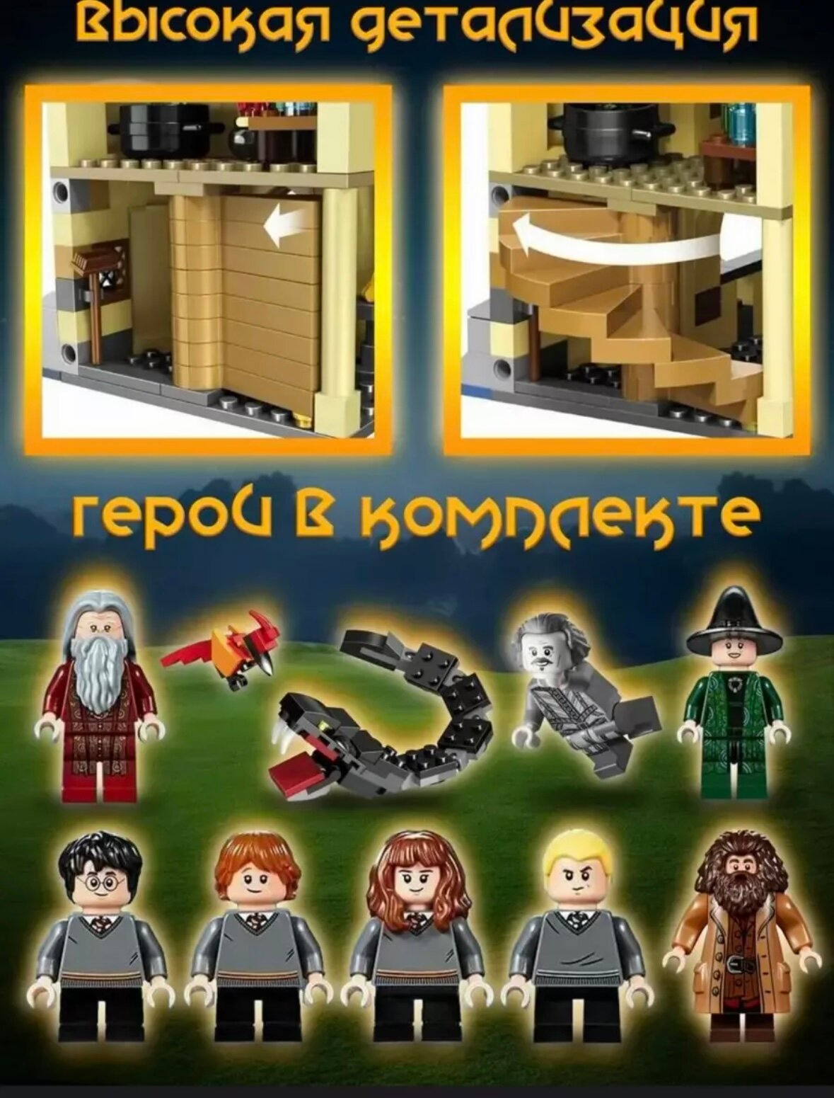 СохранитьКонструктор Большой зал Хогвартса из 924 деталей интересное: