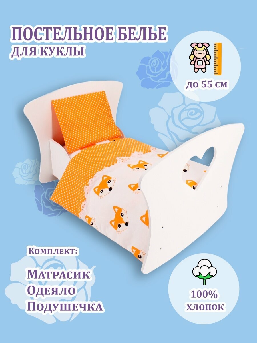 Постель для кукол/ Одеяло, матрас, подушка для куклы/ Лисички интересное: