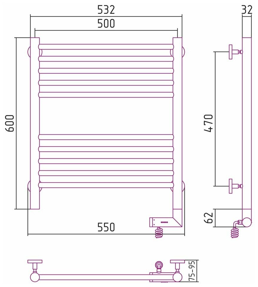 Электрический полотенцесушитель Сунержа Богема 2.0 прямая 600x500 птэн без покрытия