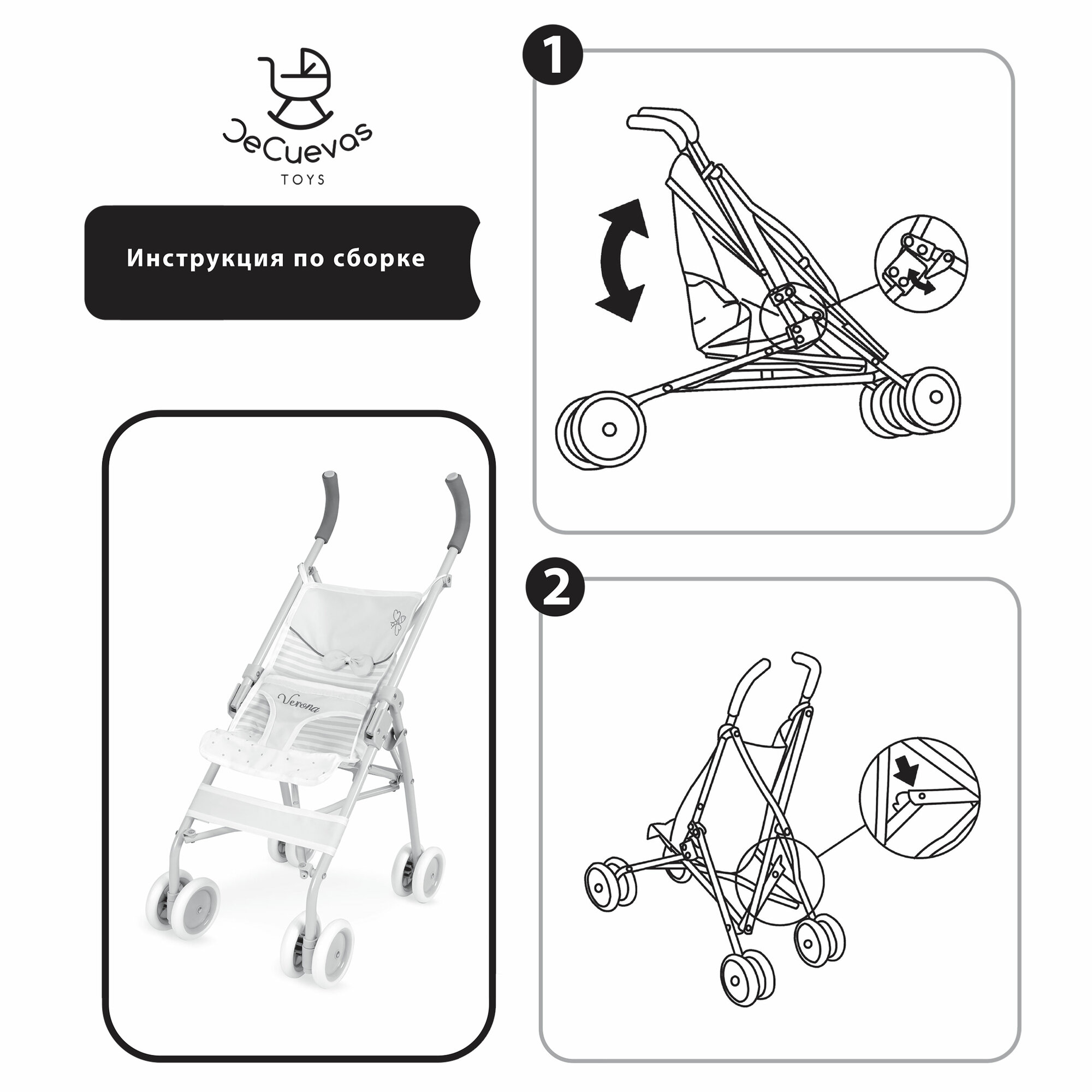 Коляска для кукол трость DeCuevas Toys, высота ручки 75 см, серия "Верона" 90178 интересное: