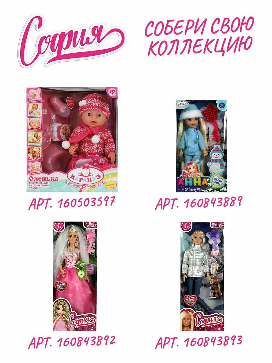 Шарнирная кукла София Спортсменка Фигуристка с аксессуарами, 29 см, ТМ Карапуз