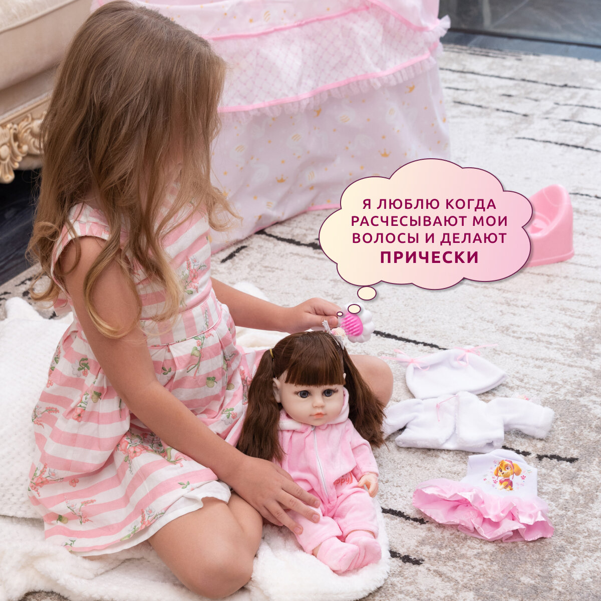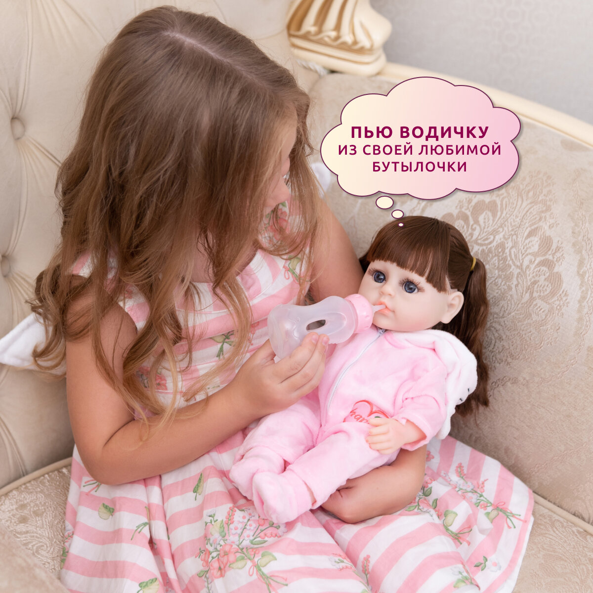 | Дополнительная информация | можно купать; пьет и писает; интерактивная; длинные волосы;реалистичная кукла; разговаривает |