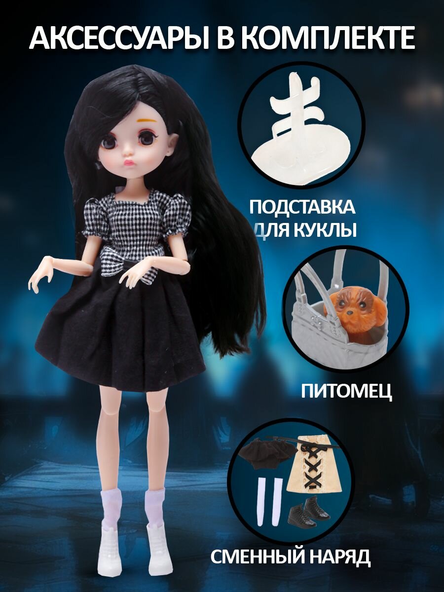 СохранитьКукла шарнирная Уэнсдей WiMi коллекционная с одеждой, бжд на шарнирах с аксессуарами интересное: