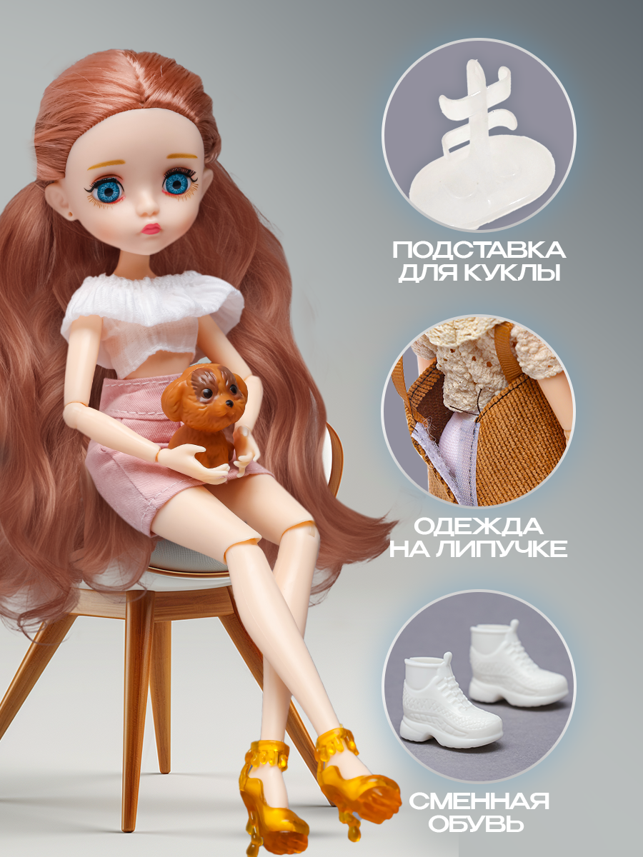 | Комплектация | Шарнирная кукла - 1 шт; Кукольная одежда; Питомец |