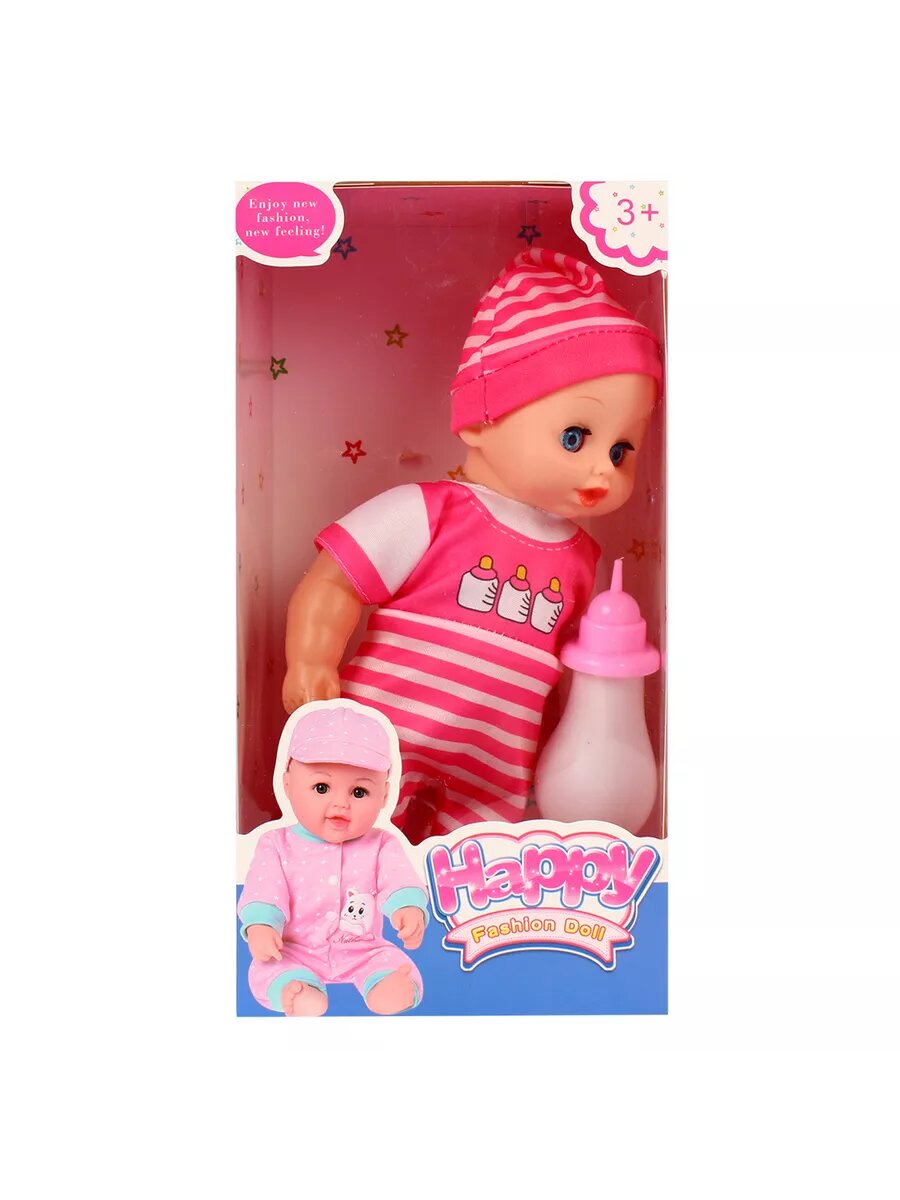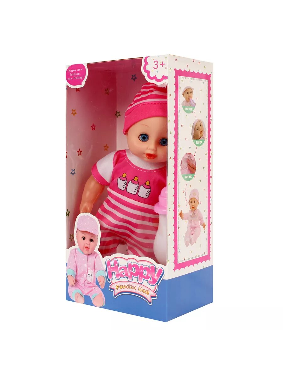 Пупс кукла 30 см с бутылочкой, глаза закрываются, одежда снимается, розовый костюм / 1 шт.