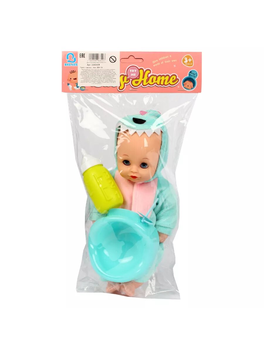 Купить Пупс кукла 30 см в костюме динозаврика с аксессуарами бутылочка, горшок / 1 шт
