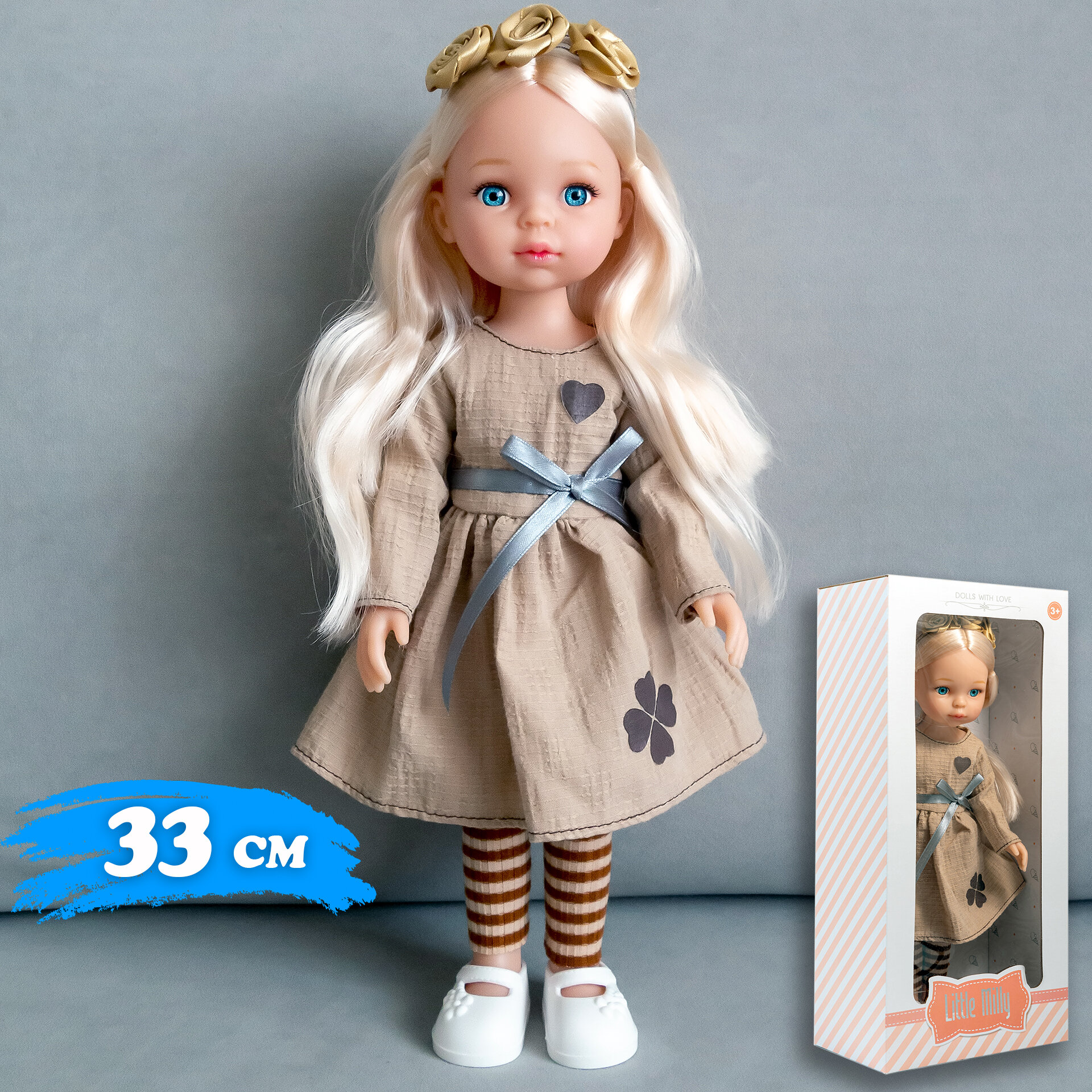 Купить Кукла 33 см Little Milly в бежевом платье с длинными волосами, реалистичная куколка на шарнирах со съемной одеждой