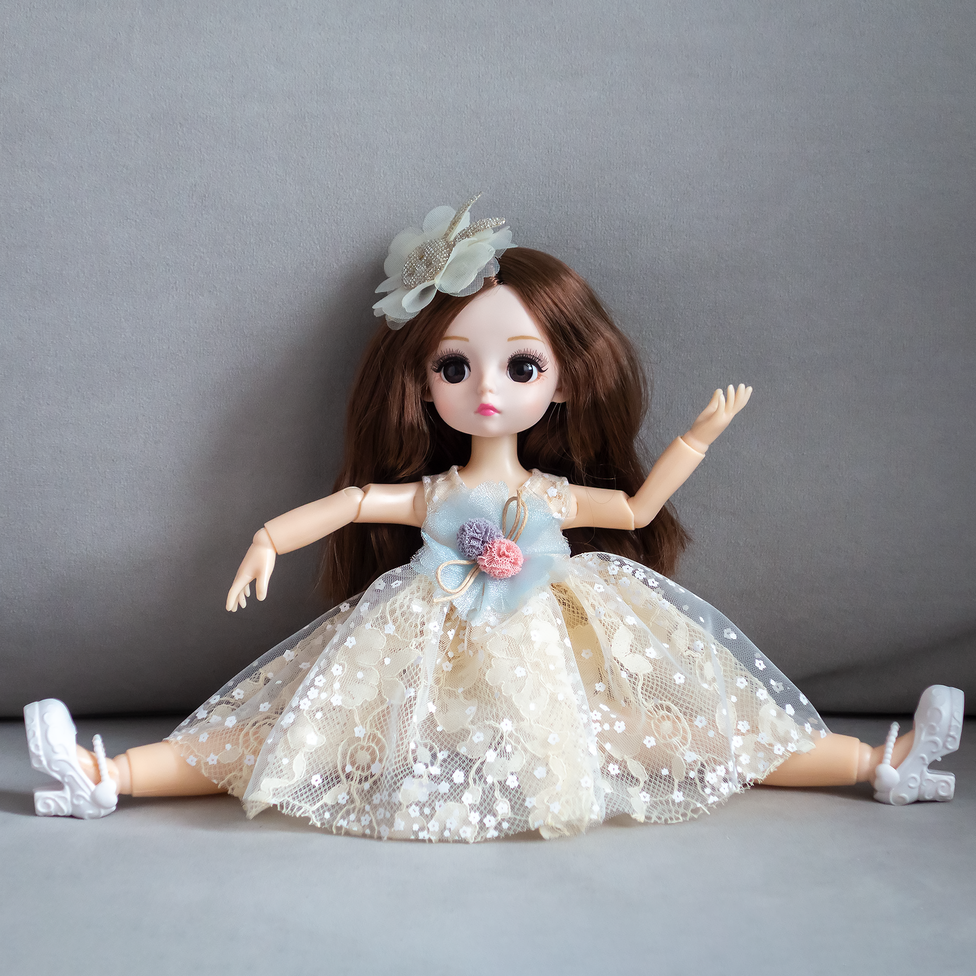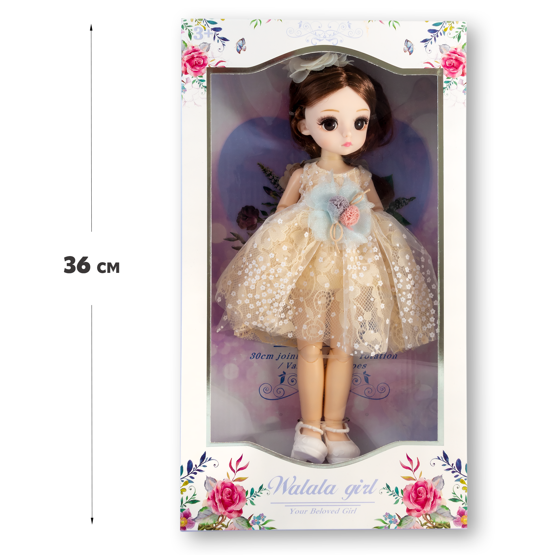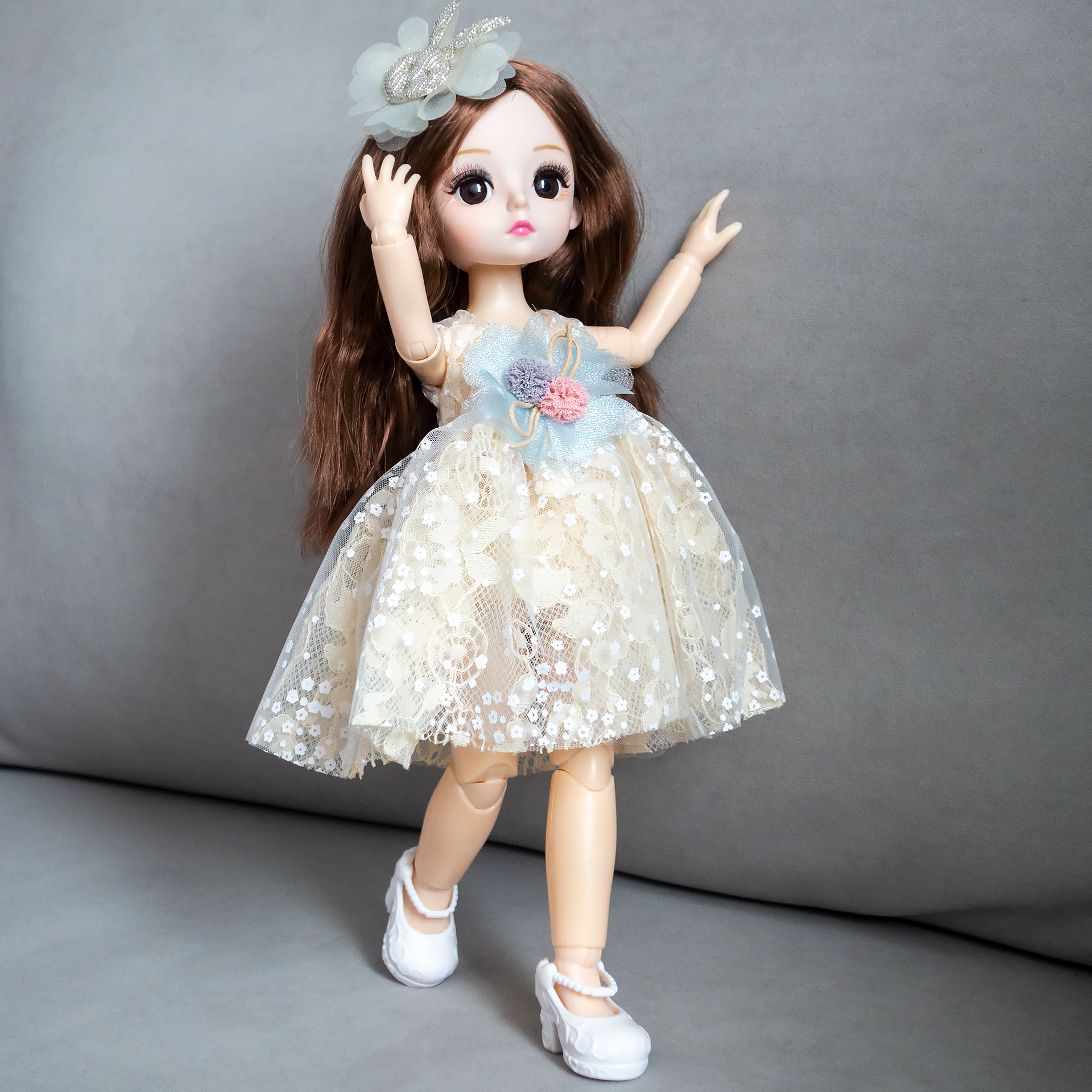 Купить Кукла 31 см / 13 шарниров, в кремовом платье с темными волосами, коллекционная реалистичная шарнирная BJD куколка со съемной одеждой