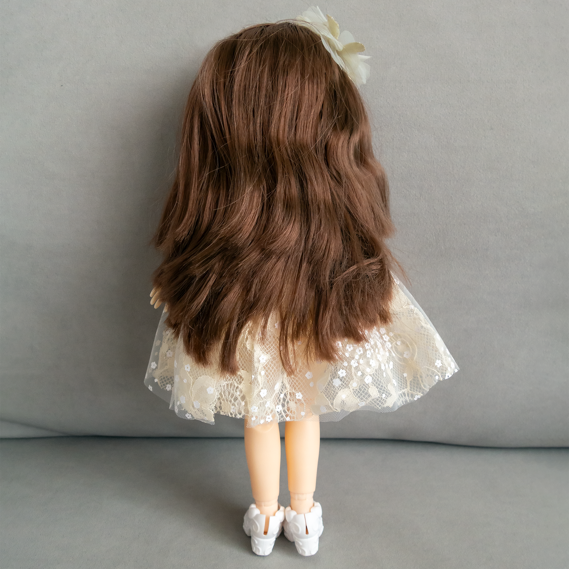 Кукла 33 см Little Milly в сером платье с длинными волосами, коллекционная реалистичная куколка для девочки на шарнирах со съемной одеждой