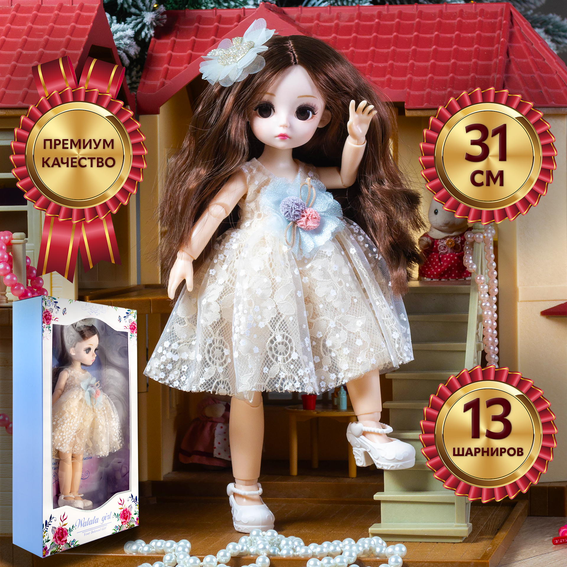 СохранитьКукла 31 см / 13 шарниров, в кремовом платье с темными волосами, коллекционная реалистичная шарнирная BJD куколка со съемной одеждой интересное: