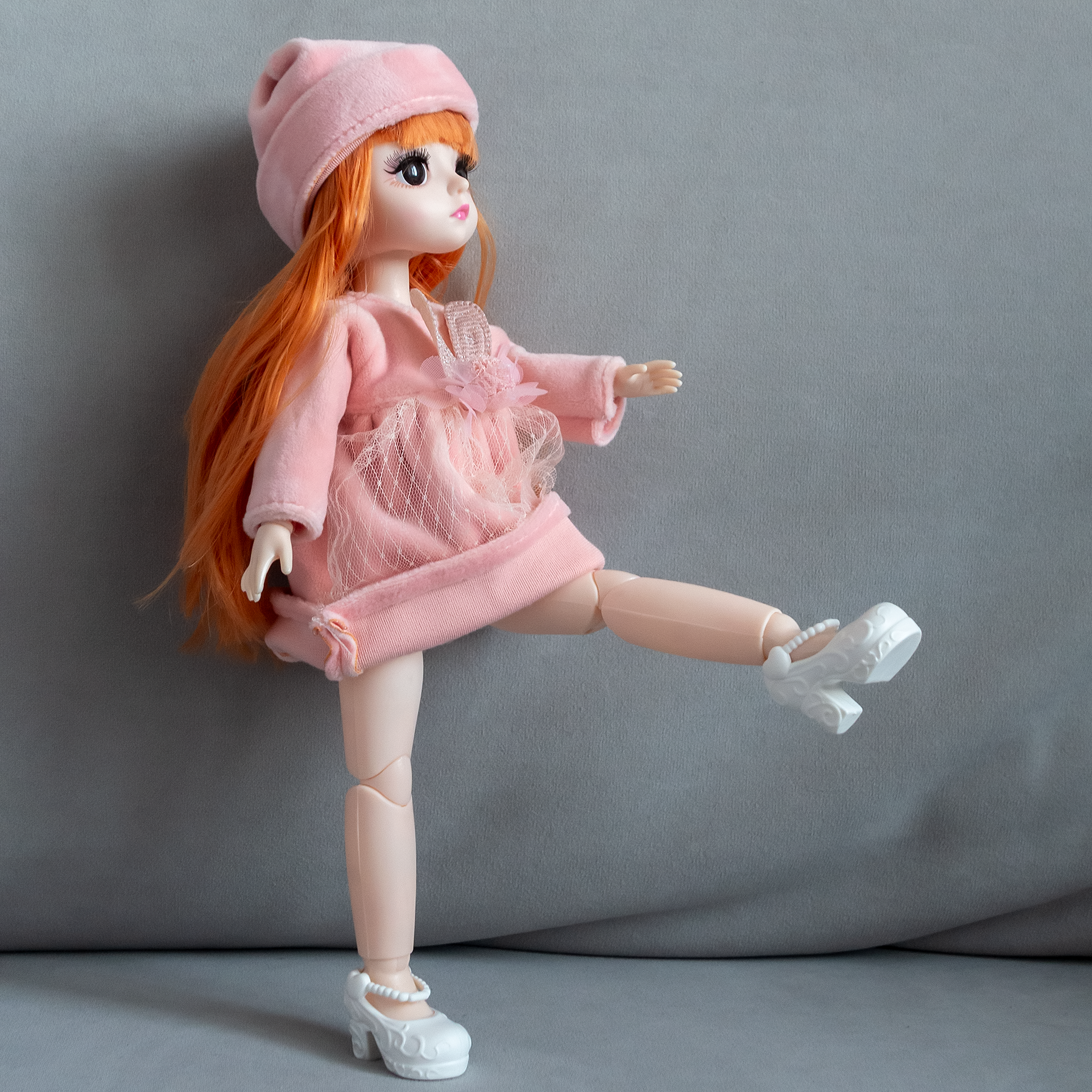 Купить Кукла 31 см / 13 шарниров, в розовом платье и шапочке с рыжими волосами, коллекционная реалистичная шарнирная BJD куколка со съемной одеждой