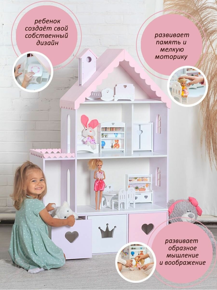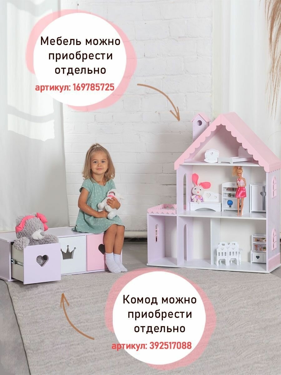 Кукольный домик деревянный с комодом Стефания для кукол до 32 см лилово-розовый интересное: