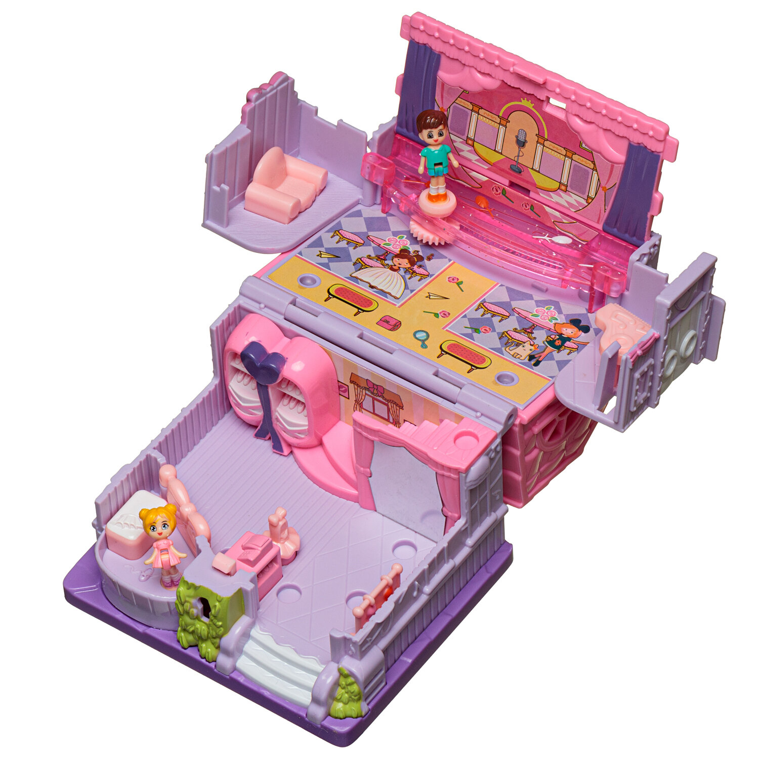 Кукольный дом-трансформер Junfa Танцевальная студия на батарейках WK-24492 интересное: