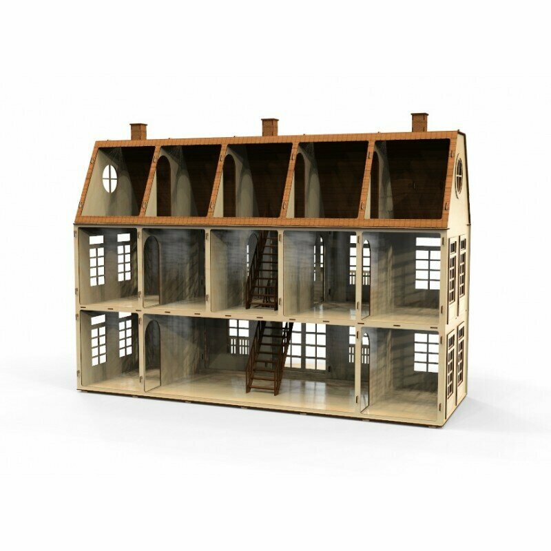 Кукольный деревянный домик широкий современный для кукол интересное: