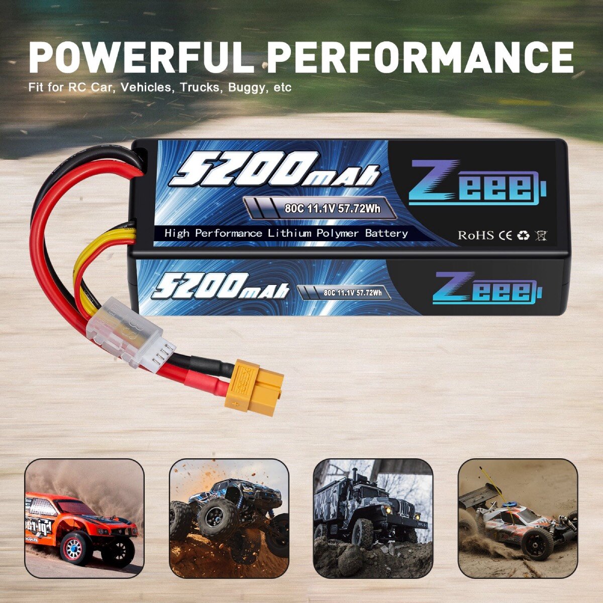 Купить Аккумулятор для радиоуправляемой машинки 11.1V Li-Po 5200mah 80C разъем XT60