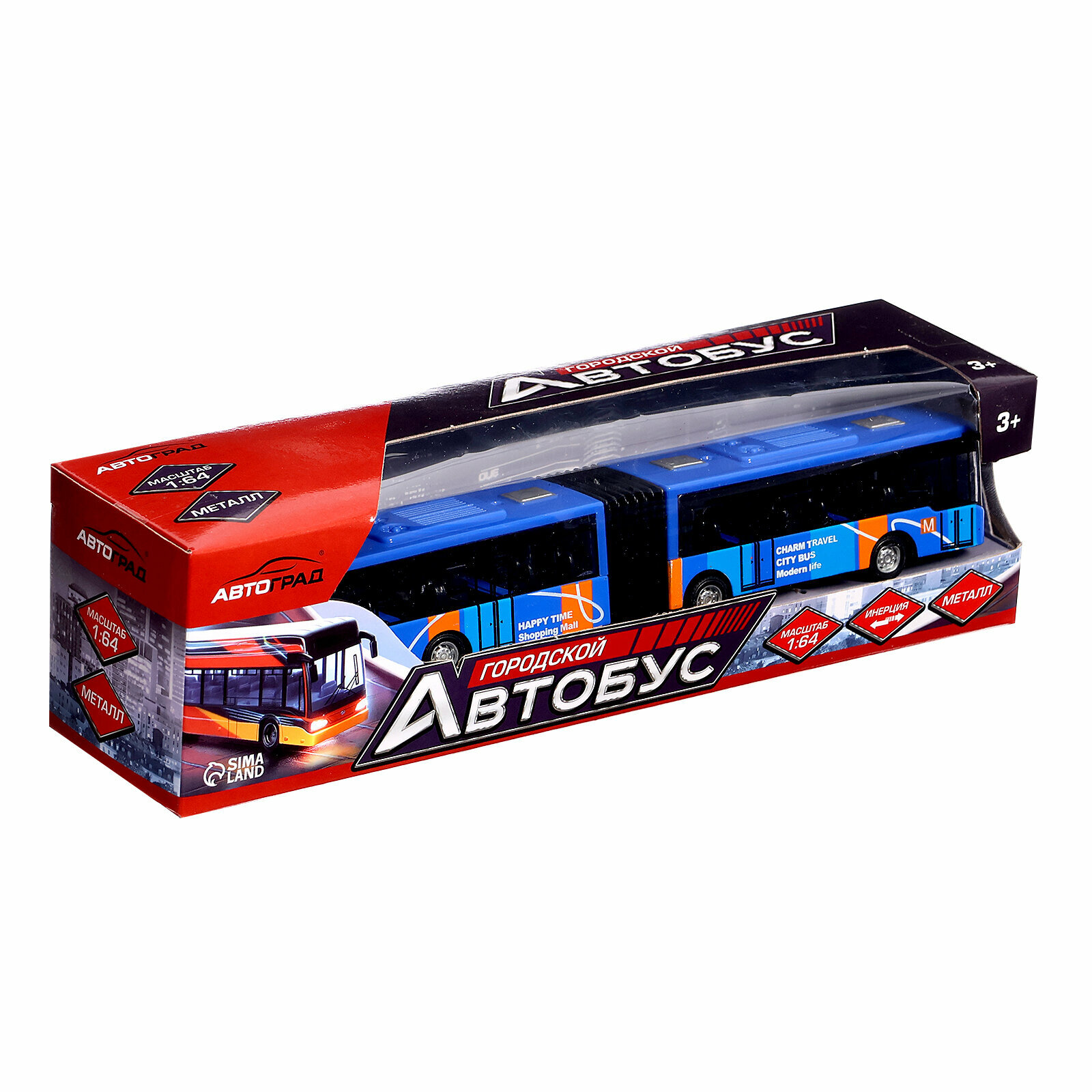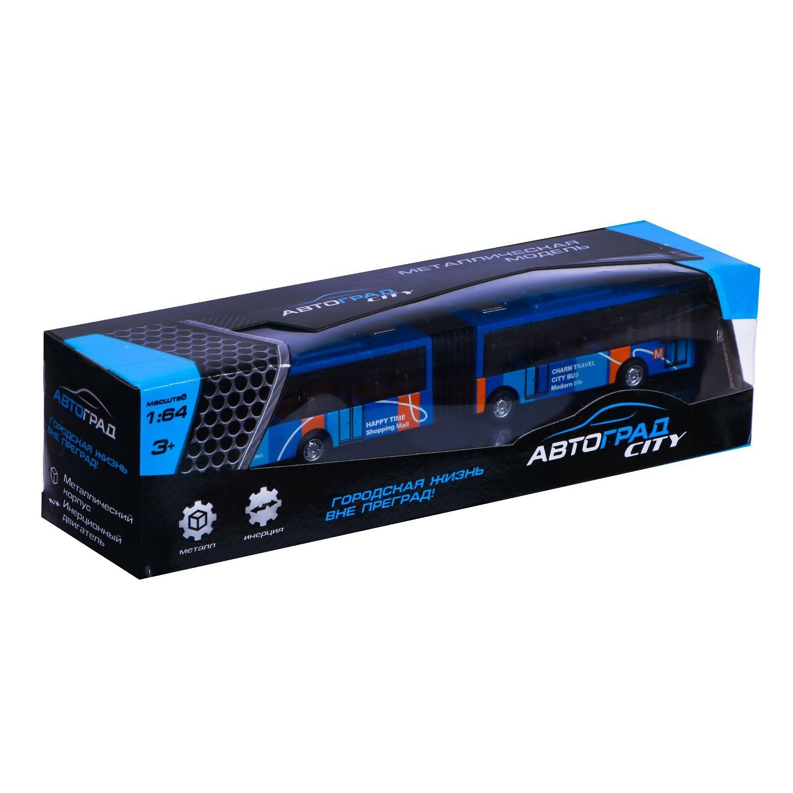 Автобус металлический "Городской транспорт" инерционный, масштаб 1:64, АВТОГРАД