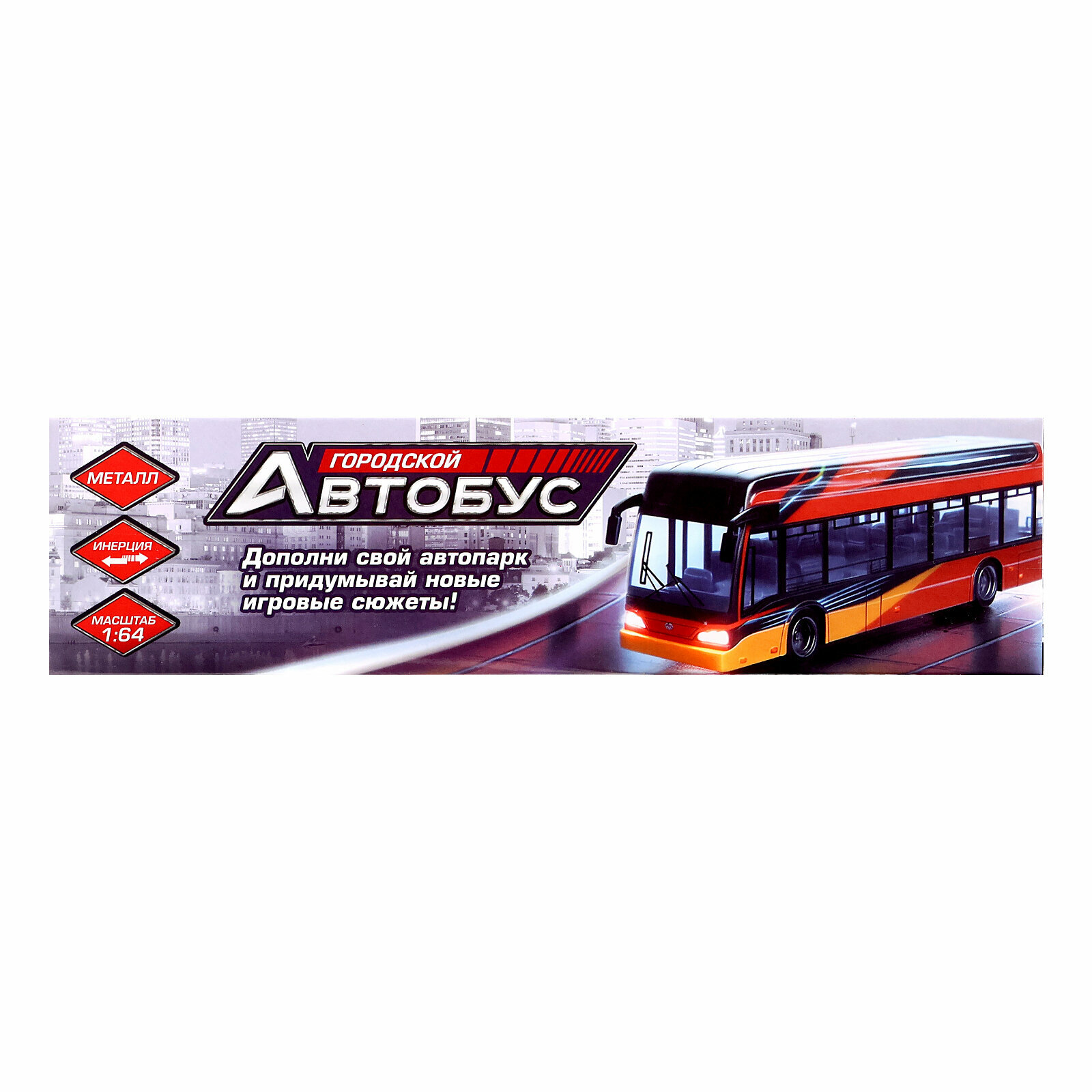 Автобус металлический Городской транспорт, инерционный, масштаб 1:64, цвет красный Автоград 199726 .