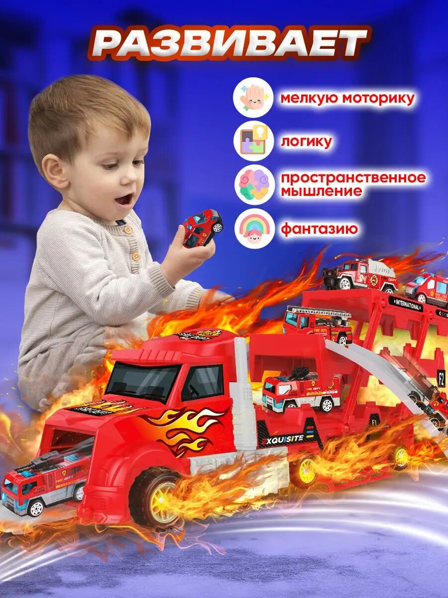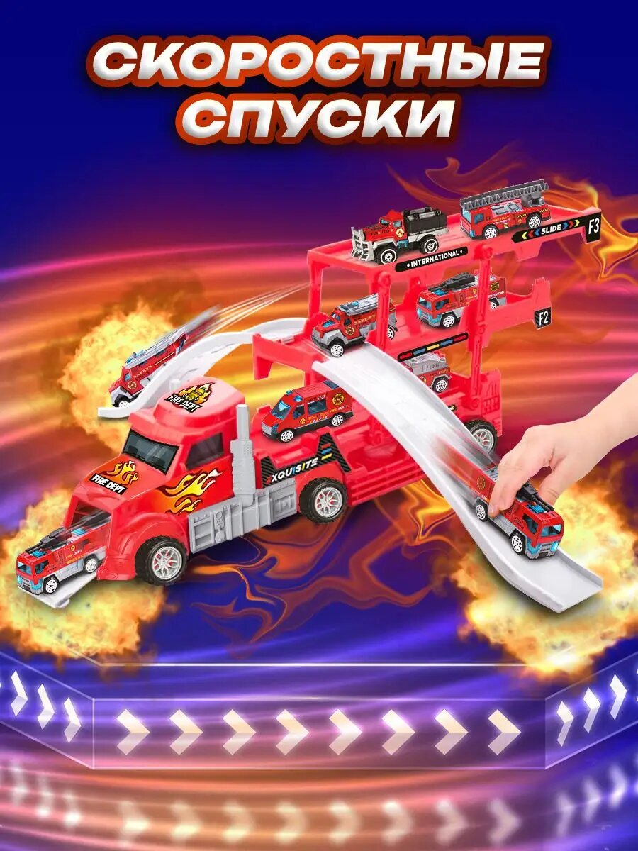 Автовоз с машинками фура парковка набор трейлер грузовик интересное: