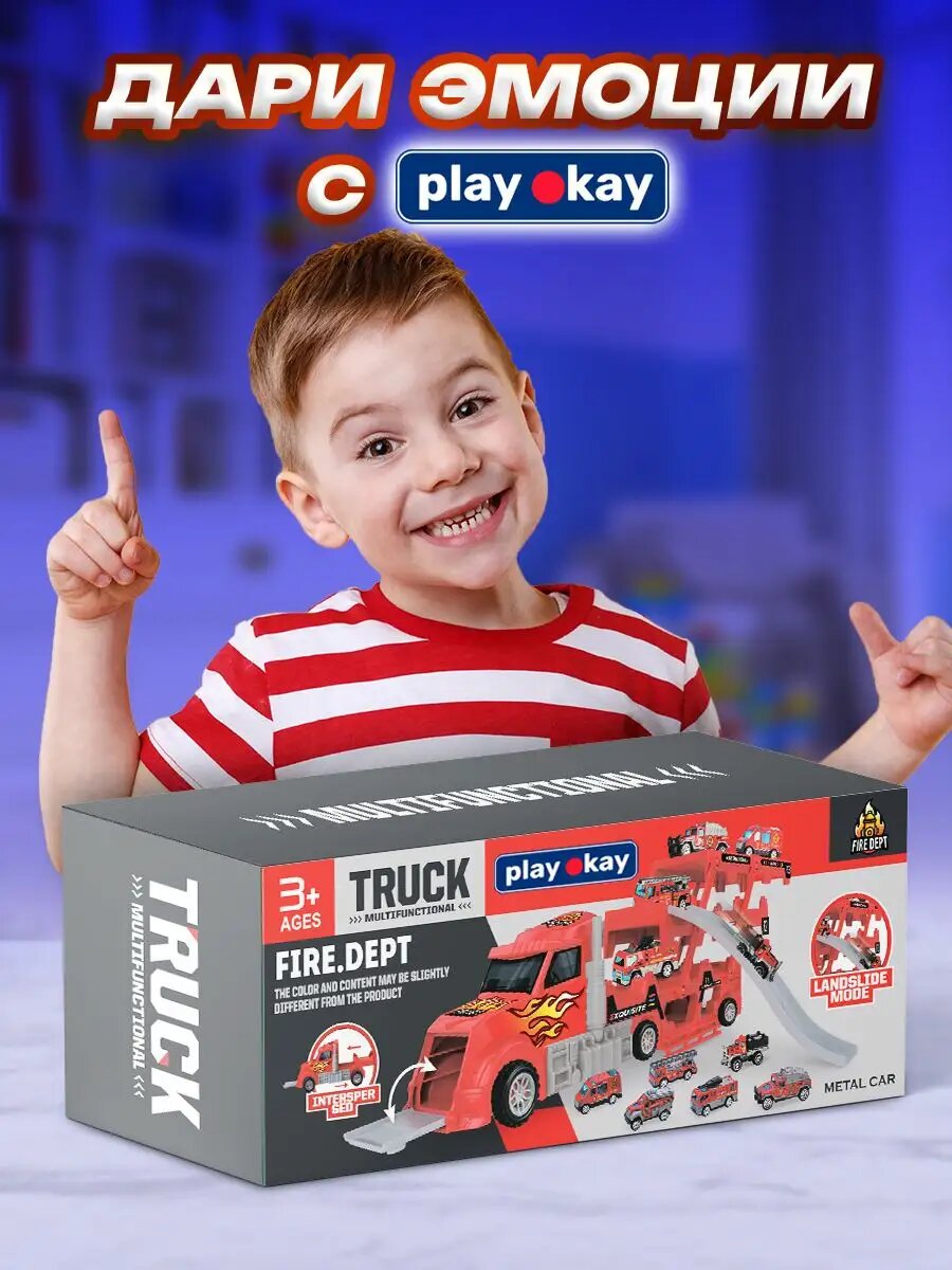 Автовоз с машинками Play Okay, детская игрушка для мальчиков, модельки для малыша, игрушечный транспорт, грузовик