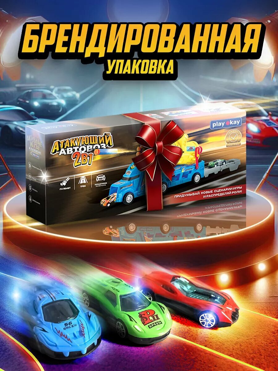 Автовоз с машинками Play Okay, детская игрушка для мальчиков, модельки для малыша, игрушечный транспорт, грузовик
