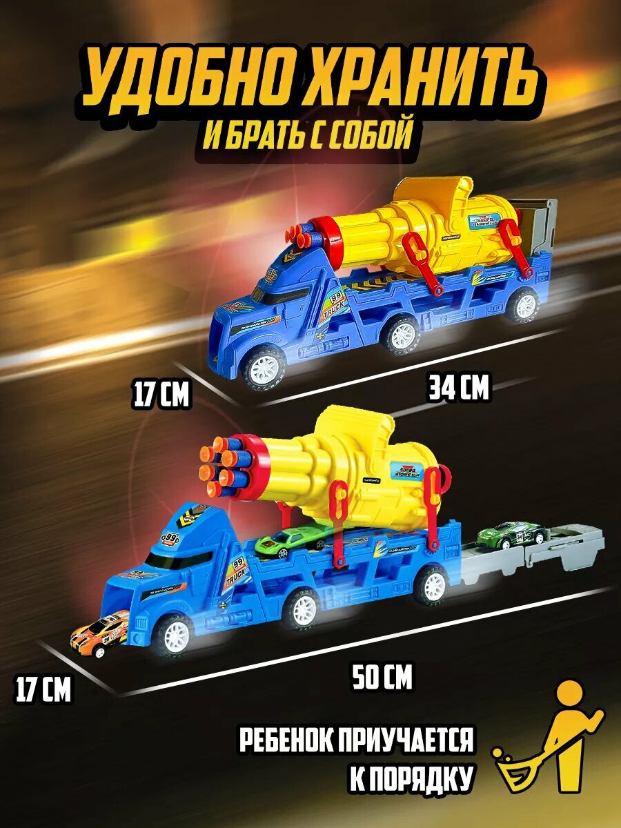 Купить Автотрек грузовик - автовоз с пушкой и катапультой