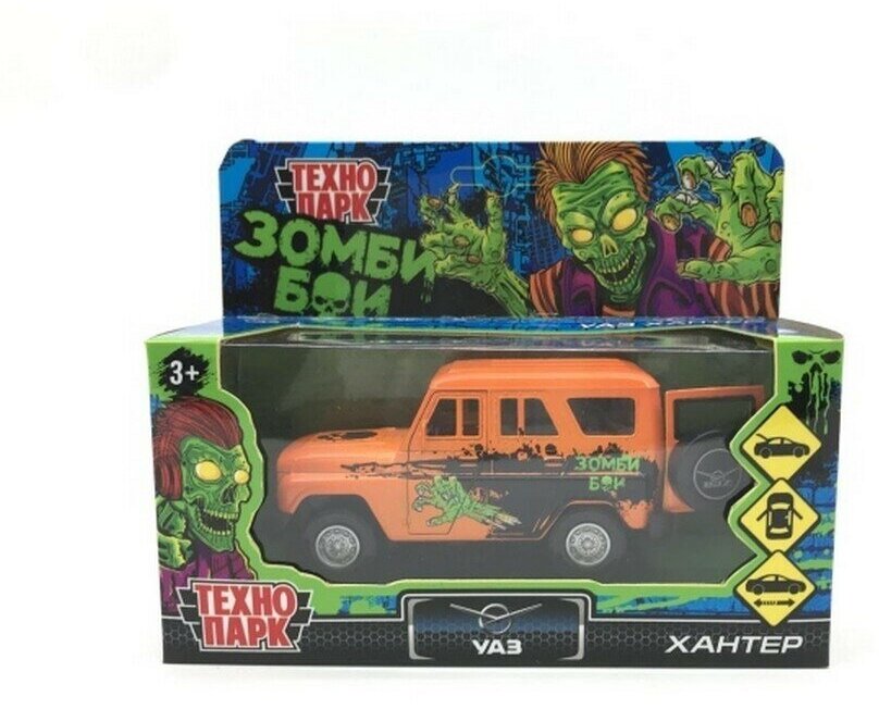 Купить Машина металл Уаз Хантер Зомби, 12 см. оранжевый Технопарк HUNTER-12ZOM-OG