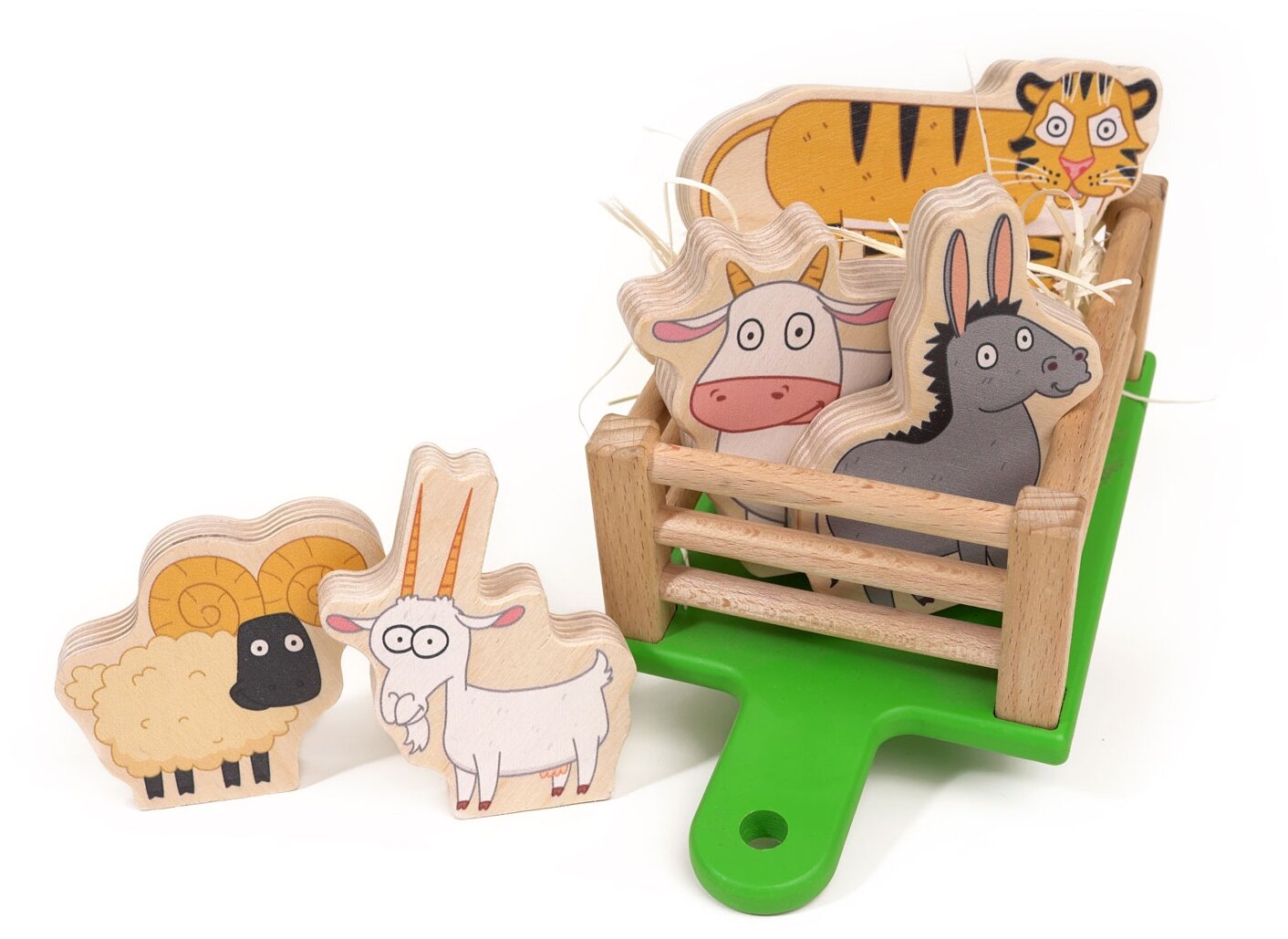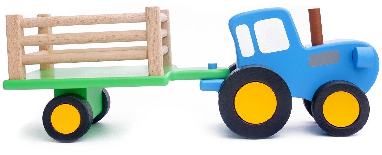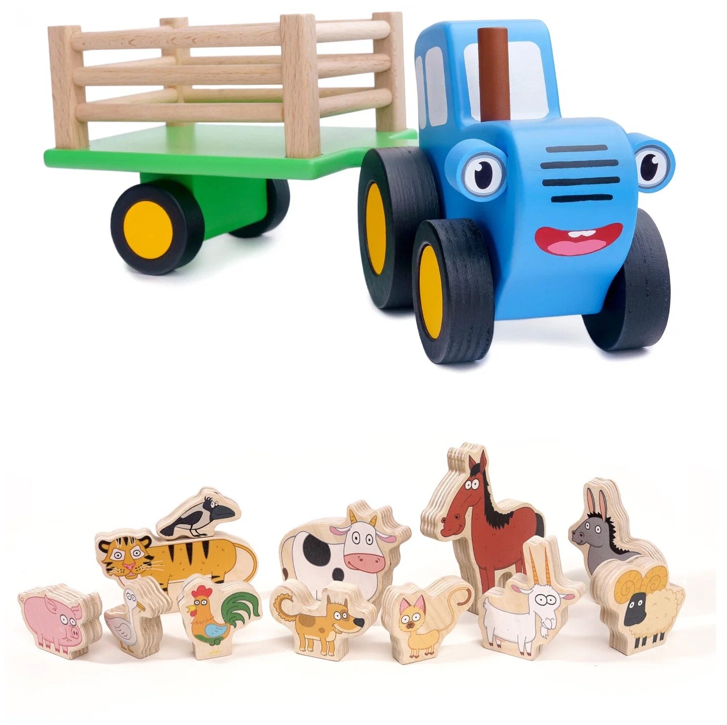 Игровой набор Синий Трактор Гоша 11 см с прицепом и набор животных (фанера) Едет трактор Bochart BT101/BT1013