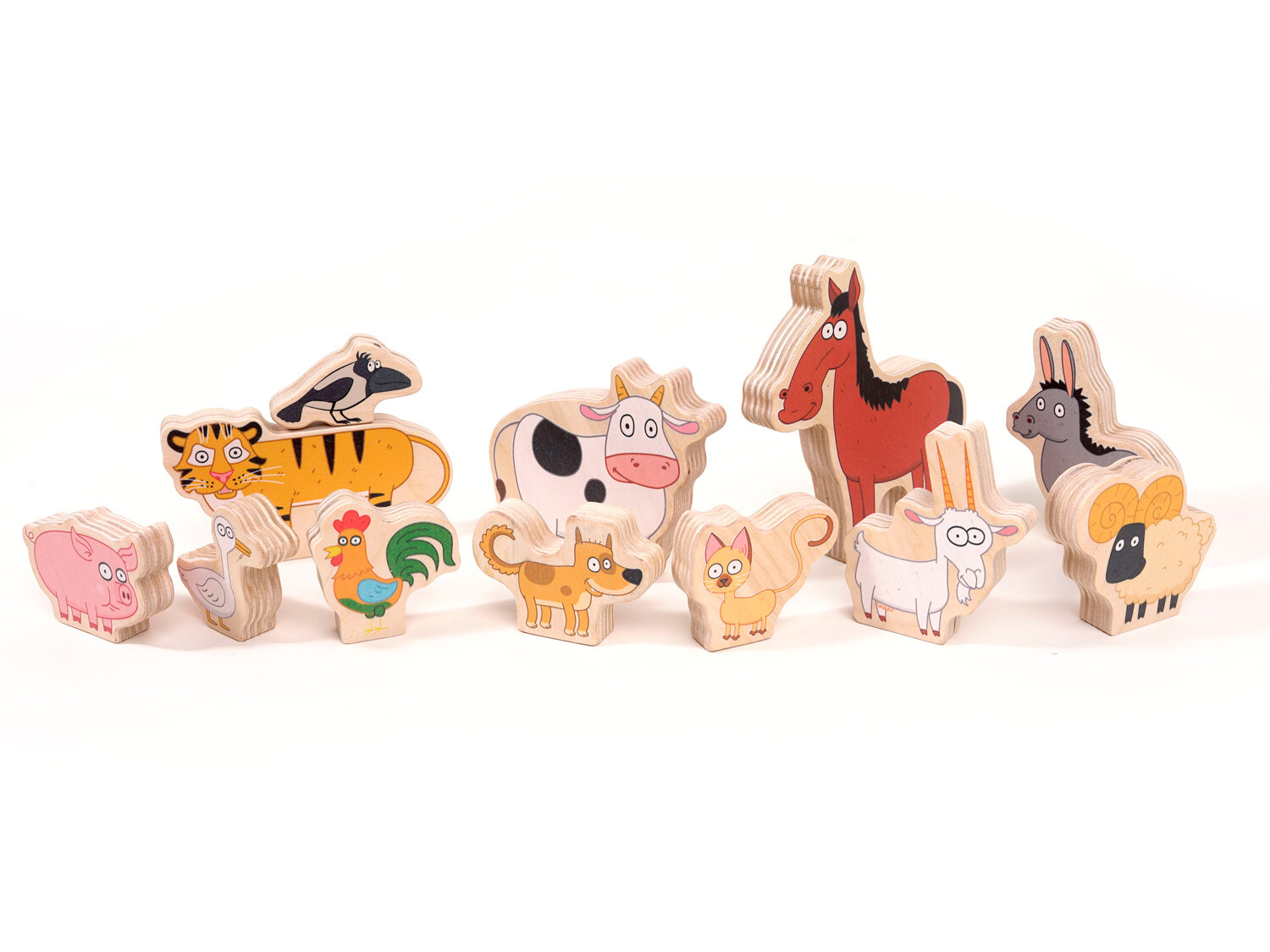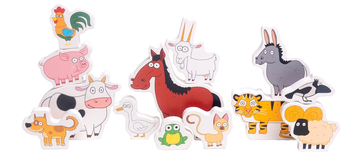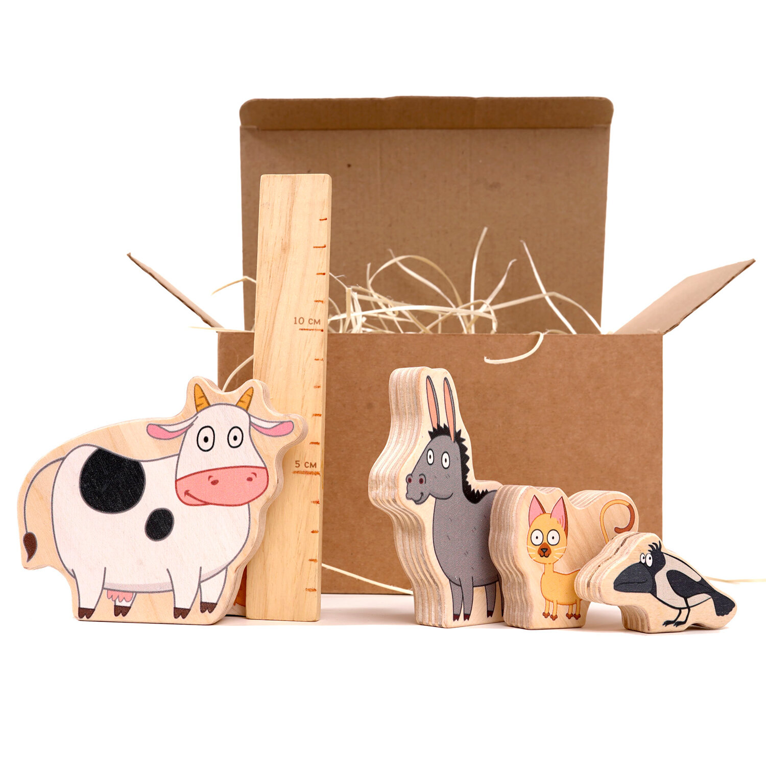 Игровой набор Синий Трактор Гоша 11 см с прицепом и набор животных (фанера) Едет трактор Bochart BT101/BT1013