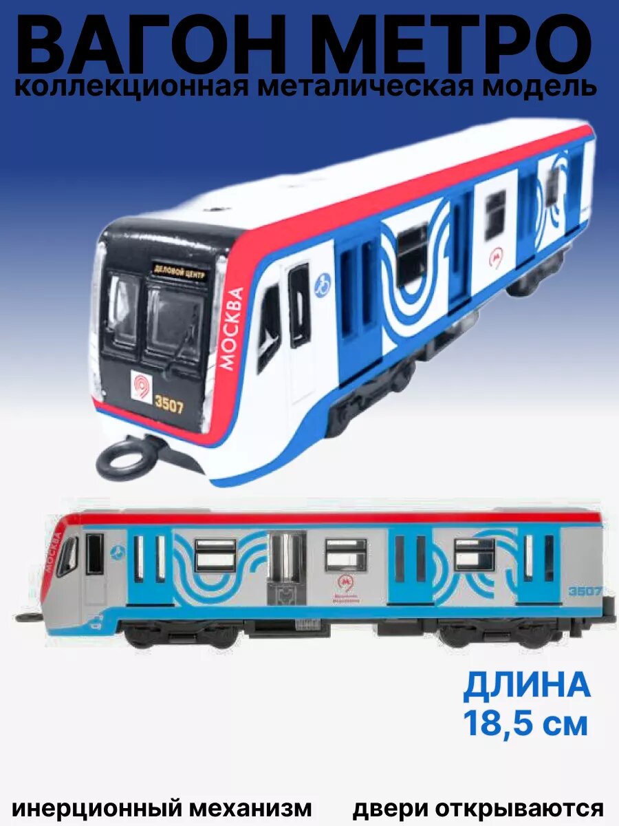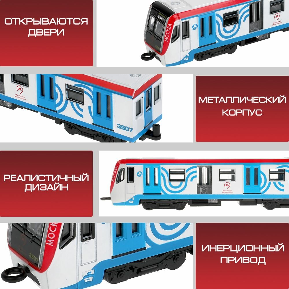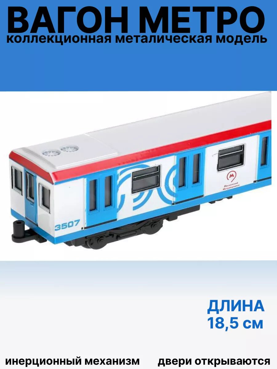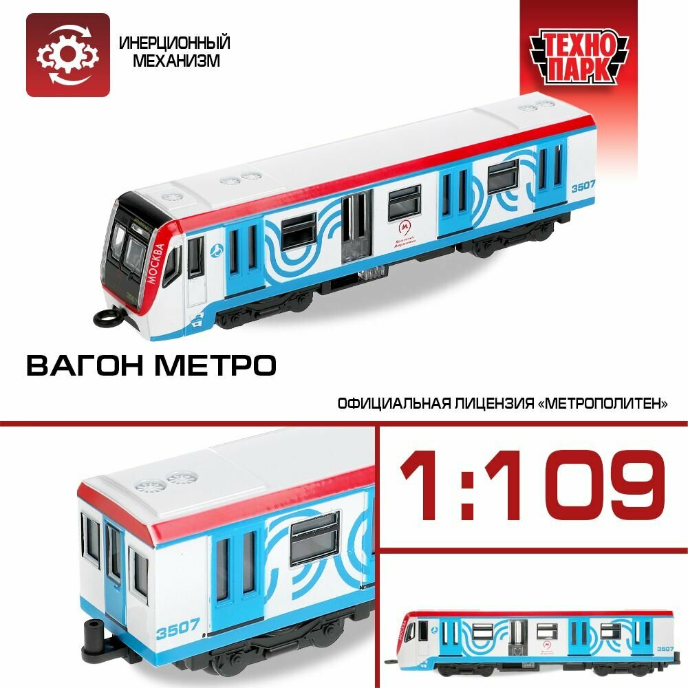 Игрушка для мальчика вагон метро Технопарк детская модель металлическая коллекционная инерционная с открывающимися дверьми 18,5 см