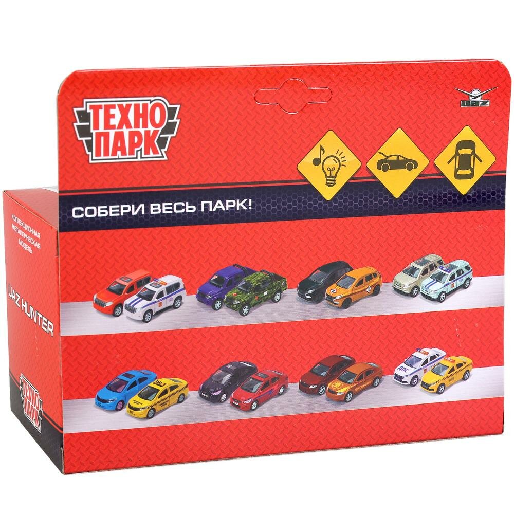 | Комплектация | Машинка игрушка детская для мальчика УАЗ Хантер Полиция Технопарк металлическая модель коллекционная инерционная с открывающимися дверьми 12 см |