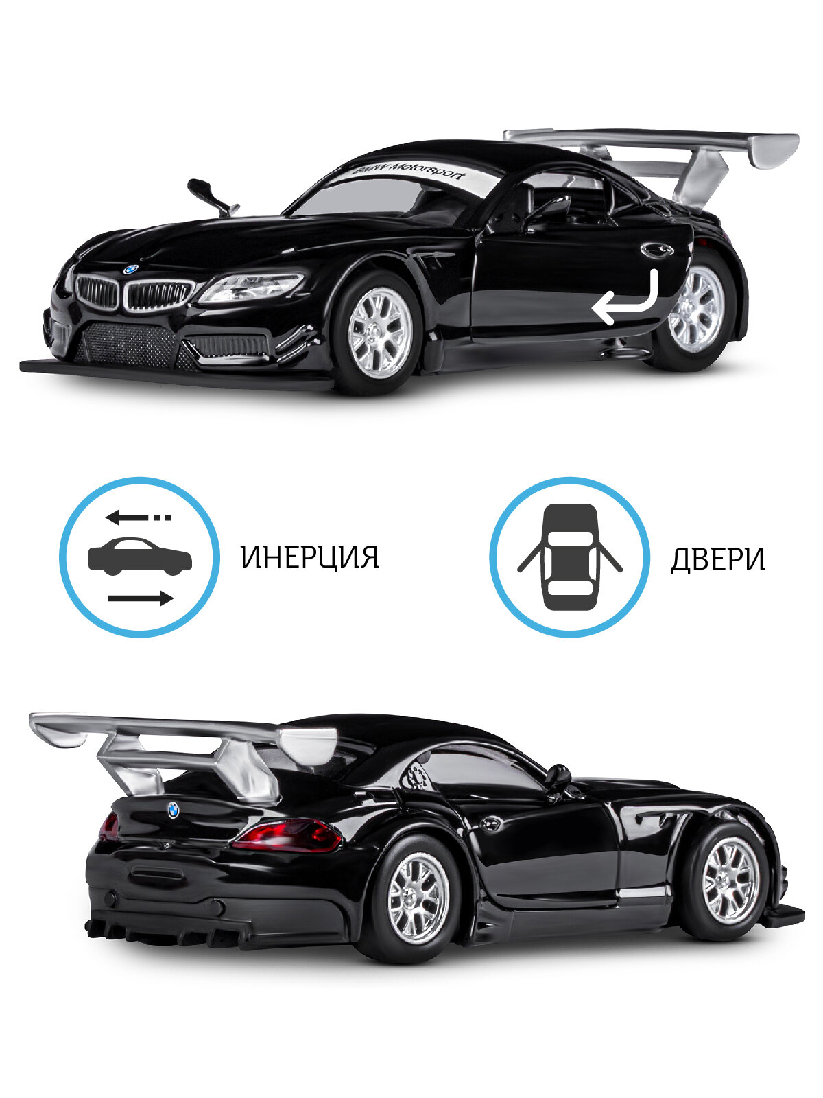 Купить Машинка металлическая инерционная ТМ Автопанорама, BMW Z4 GT3, М1:38, черный, JB1200132