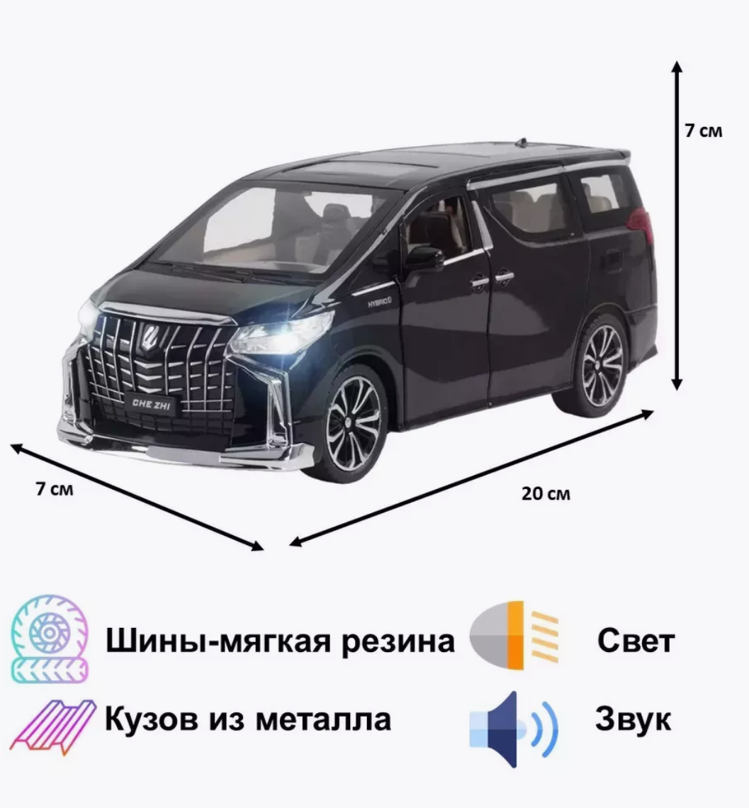 Ниже Вы можете прочитать отзывы на Металлическая машинка модель Toyota Alphard Тойота Альфард 1:24 21 см инерционная, свет, звук, коллекционные модельки / Черный, ознакомится с подробными характеристиками, посмотреть интересные обзоры и фотографии на Металлическая машинка модель Toyota Alphard Тойота Альфард 1:24 21 см инерционная, свет, звук, коллекционные модельки / Черный.
