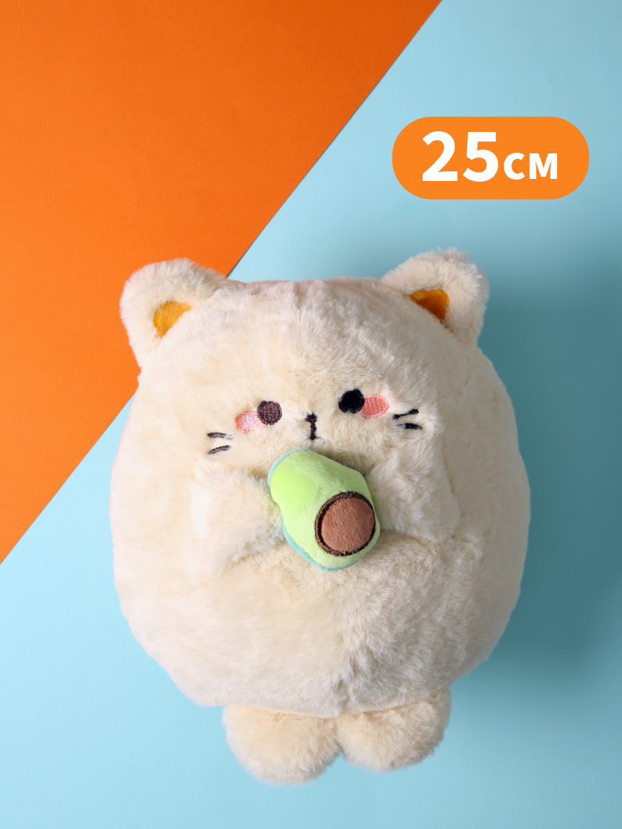 Мягкая игрушка плюшевый круглый кот с авокадо 25 см, кремовый