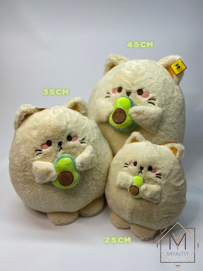 Мягкая игрушка плюшевый круглый кот с авокадо 35 см, кремовый