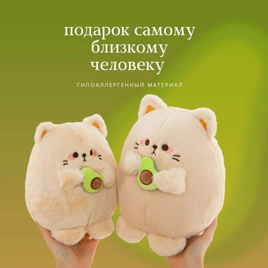 Мягкая игрушка котик с авокадо 20 см бежевый
