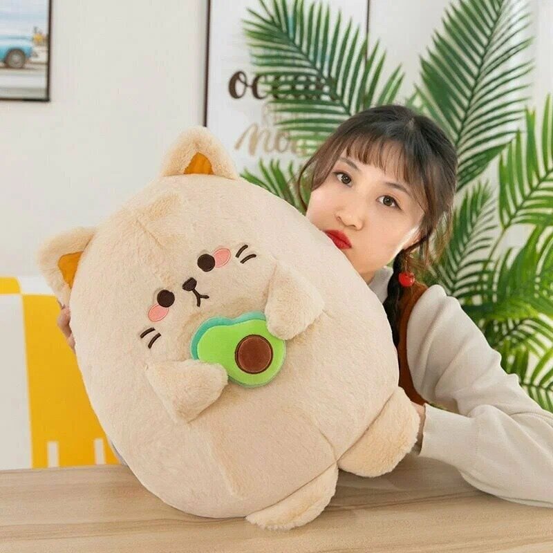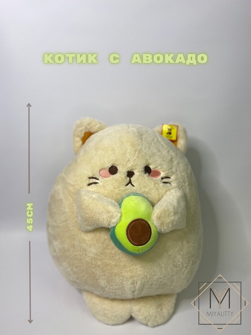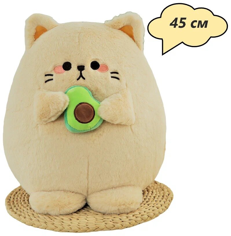 Купить Мягкая игрушка плюшевый круглый кот с авокадо 45 см, кремовый